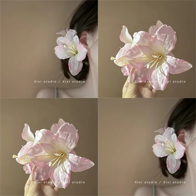 雅如初の超仙牡丹の花のヘアピンの女性の後頭部のアヒルの口は2025早春の新型の海辺の休暇の髪飾りを挟みます。