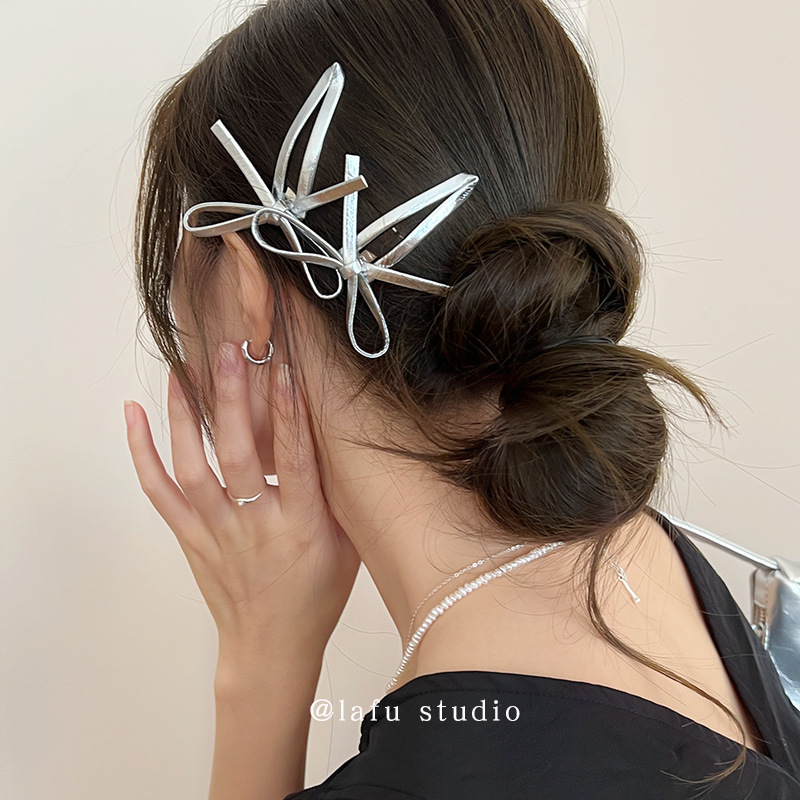 銀色の蝶結びのヘアクリップのサイドクリップの女性側の前髪クリップの頭飾りのヘアピンの額の砕毛bbクリップ2025の新型