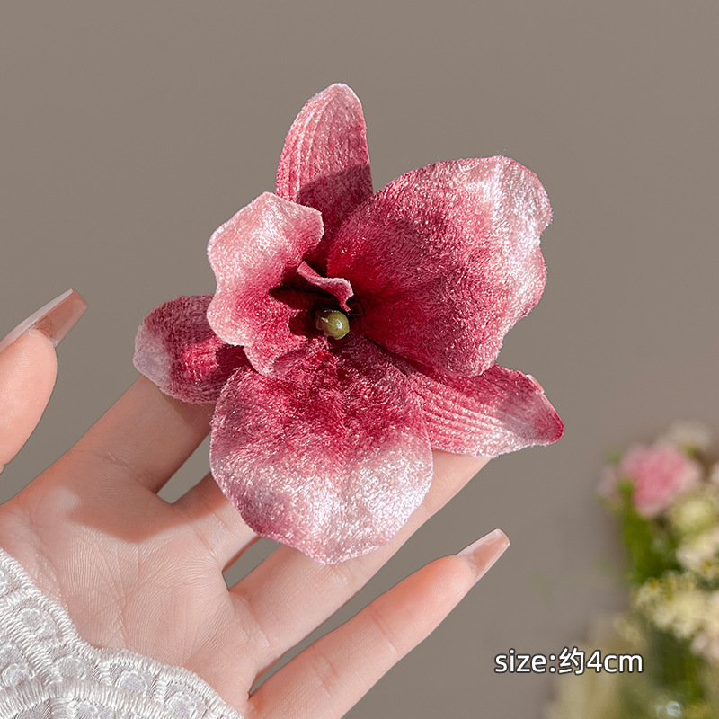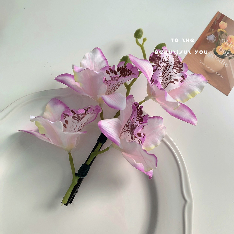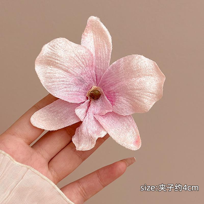 超仙欧根紗の花のヘアピン春夏旅行旅行フランスの雰囲気感カモ口のヘアピンのサイドに髪飾りを挟みます。