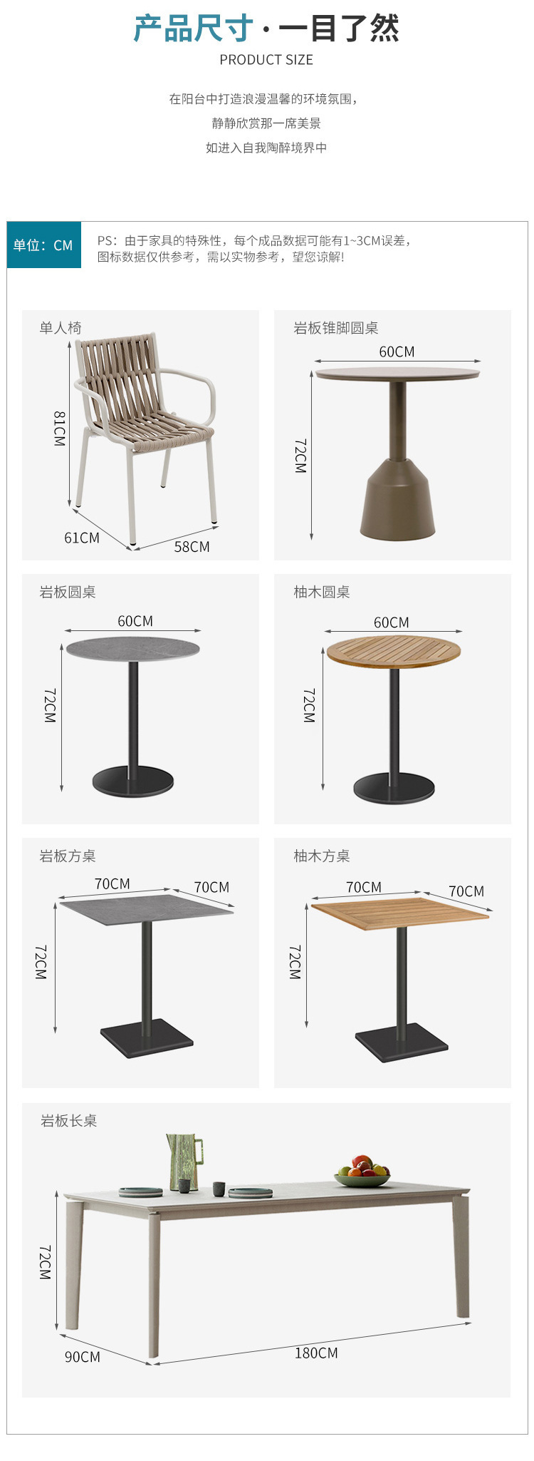 屋外テーブルと椅子、中庭、オールアルミニウム防水日焼け止めガーデン、シンプルモダンなヴィラ、屋外バルコニー、レジャー用アイアンコーヒーテーブル