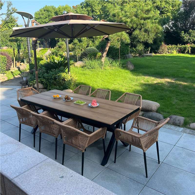民宿ベランダレジャーテーブルと椅子の組み合わせ庭の花園の外に屋外の食卓を並べます。