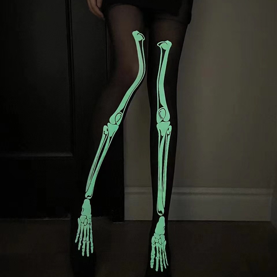 光る夜光の白い骨のトランポリンJKのズボンの靴下のハロウィンの熱い販売の道具の黒色の発光のストッキングのストッキング
