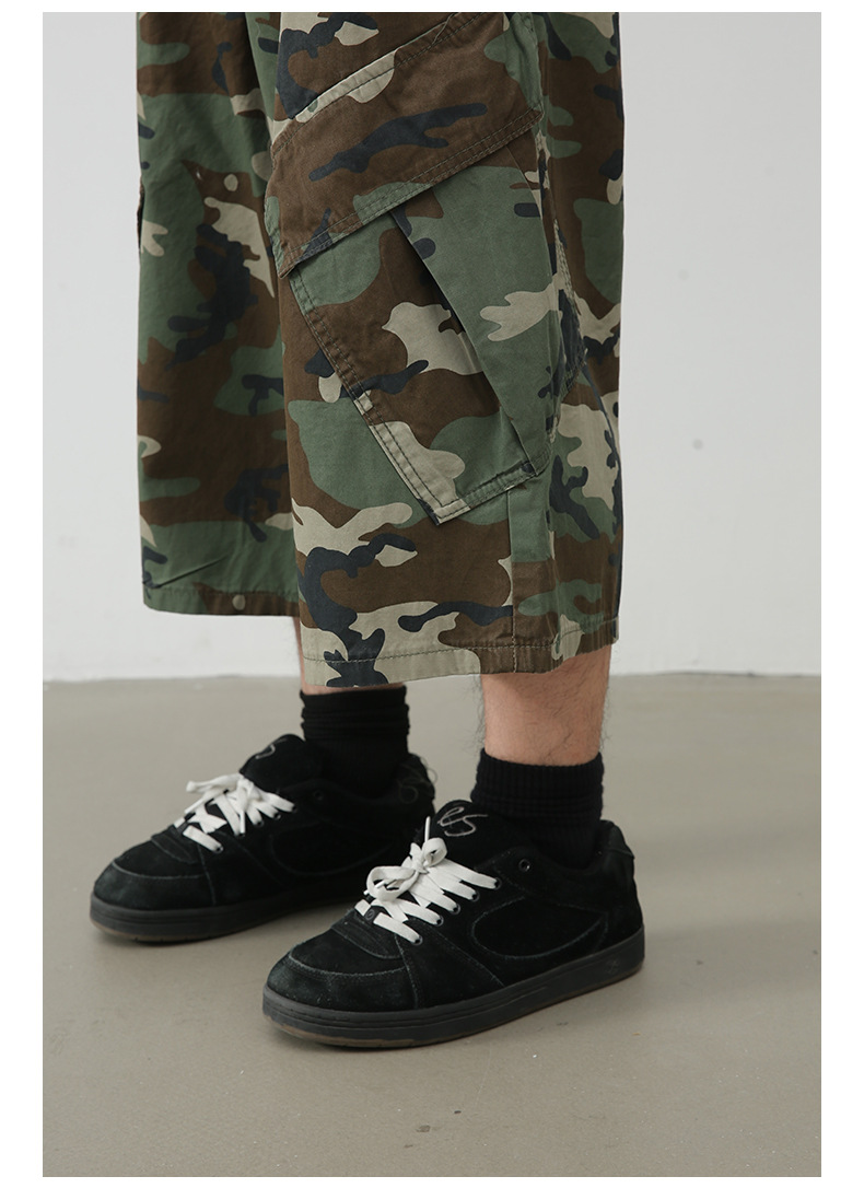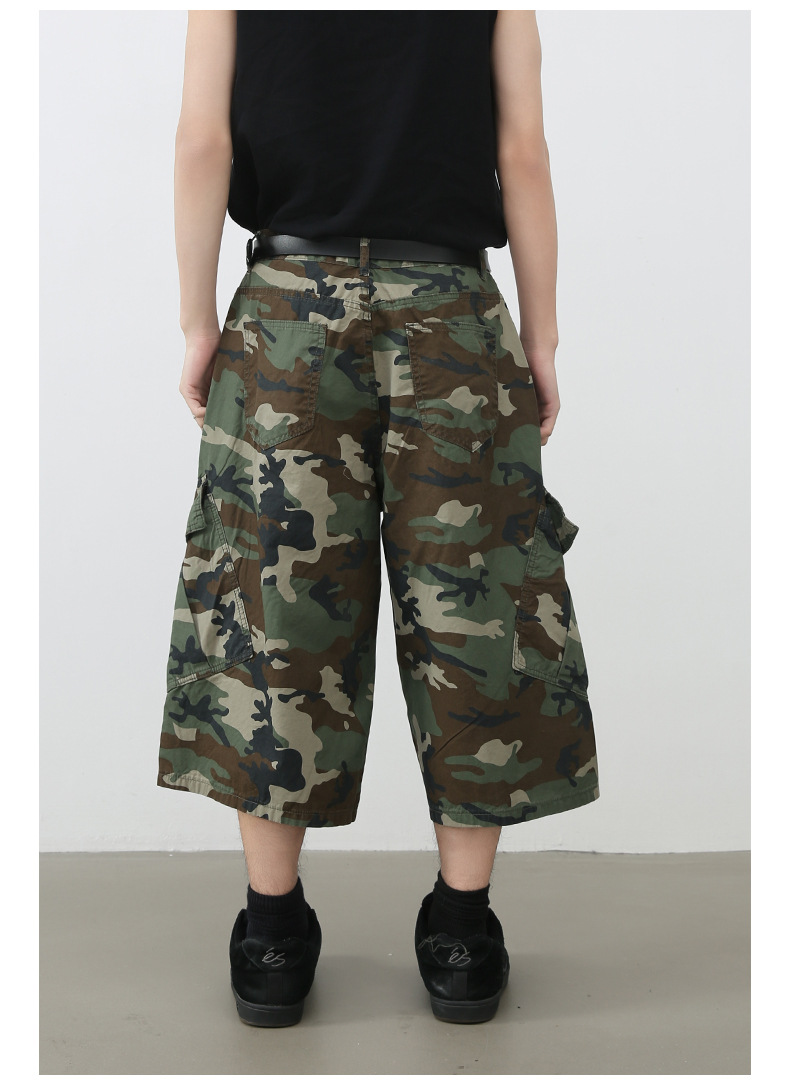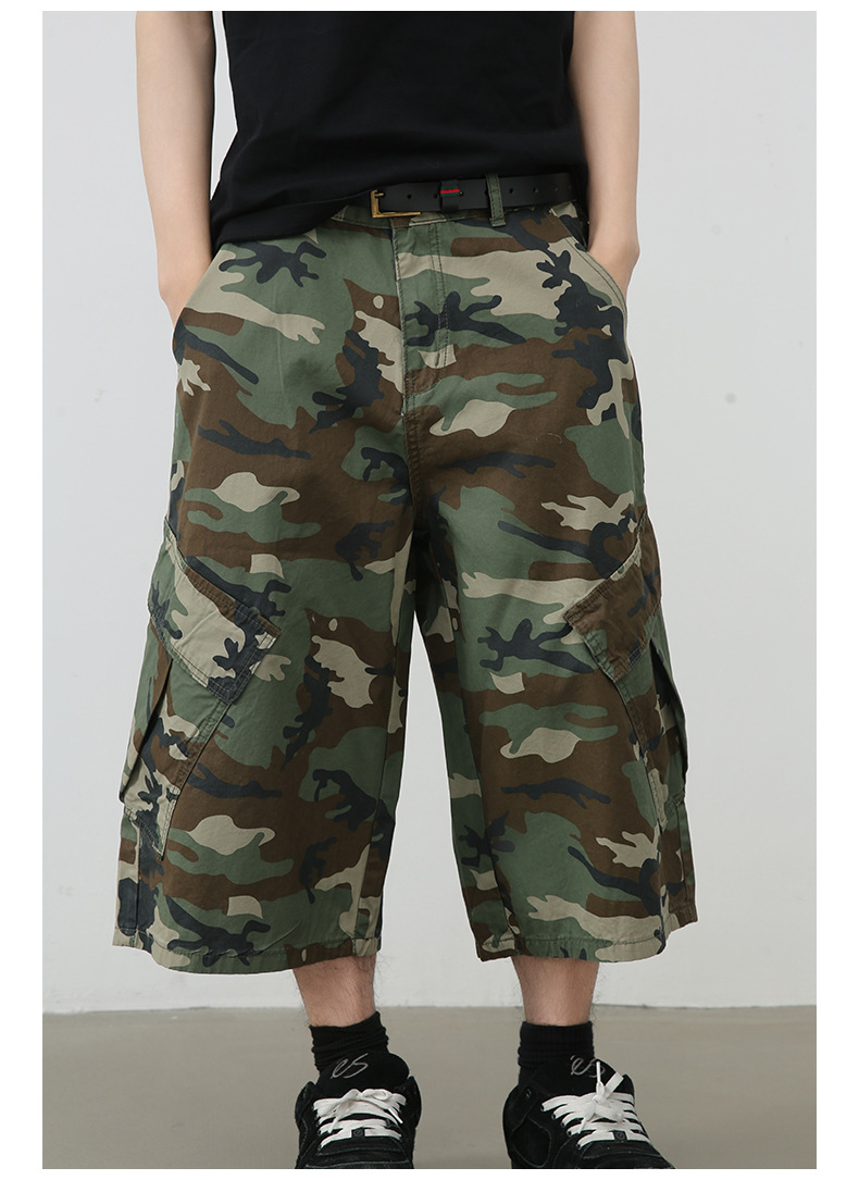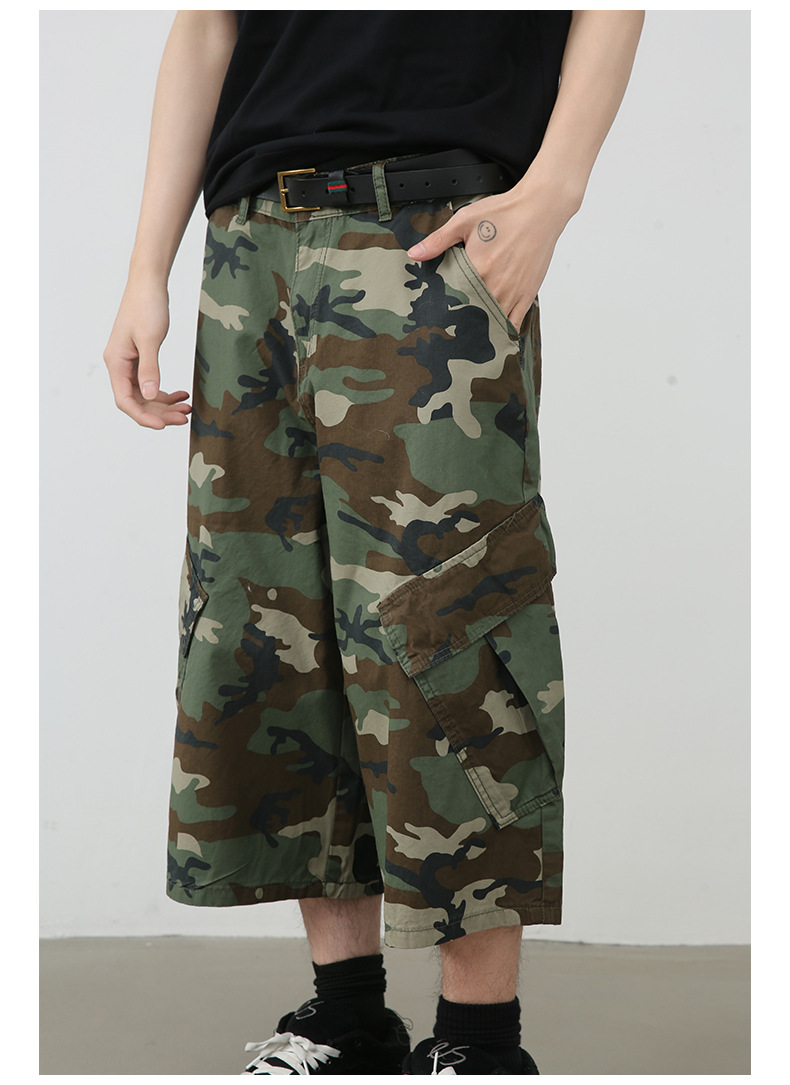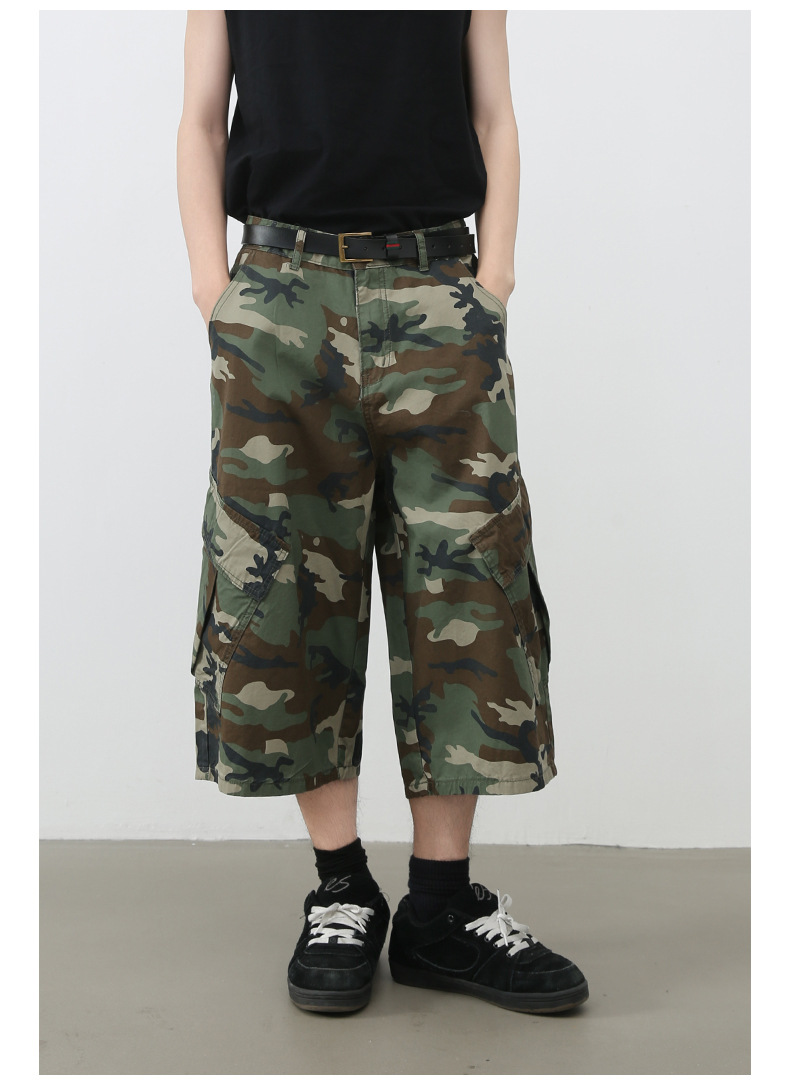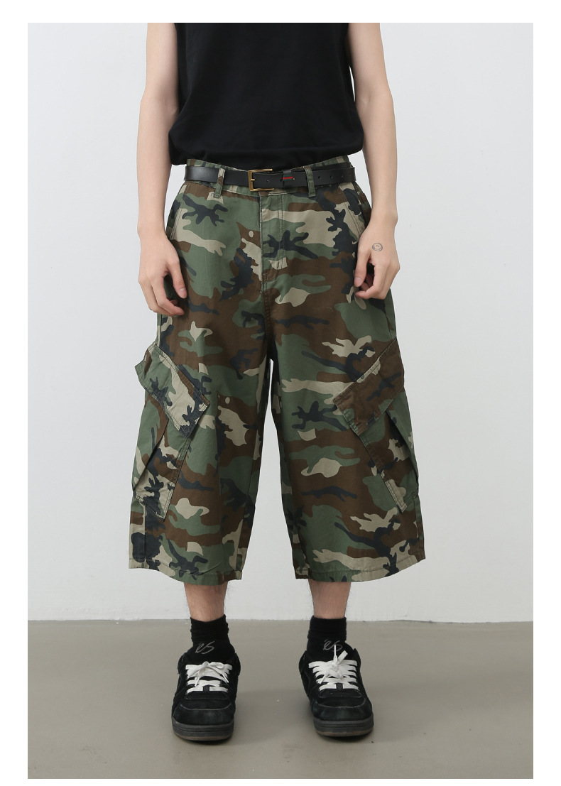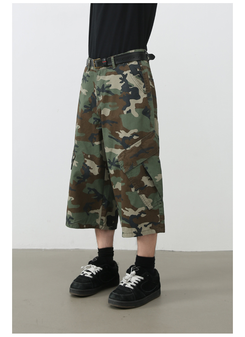 Nirbenデニム | アメリカンストリートマルチポケット迷彩デニム工装ショートパンツゆるいワイド脚ストレートパンツ潮