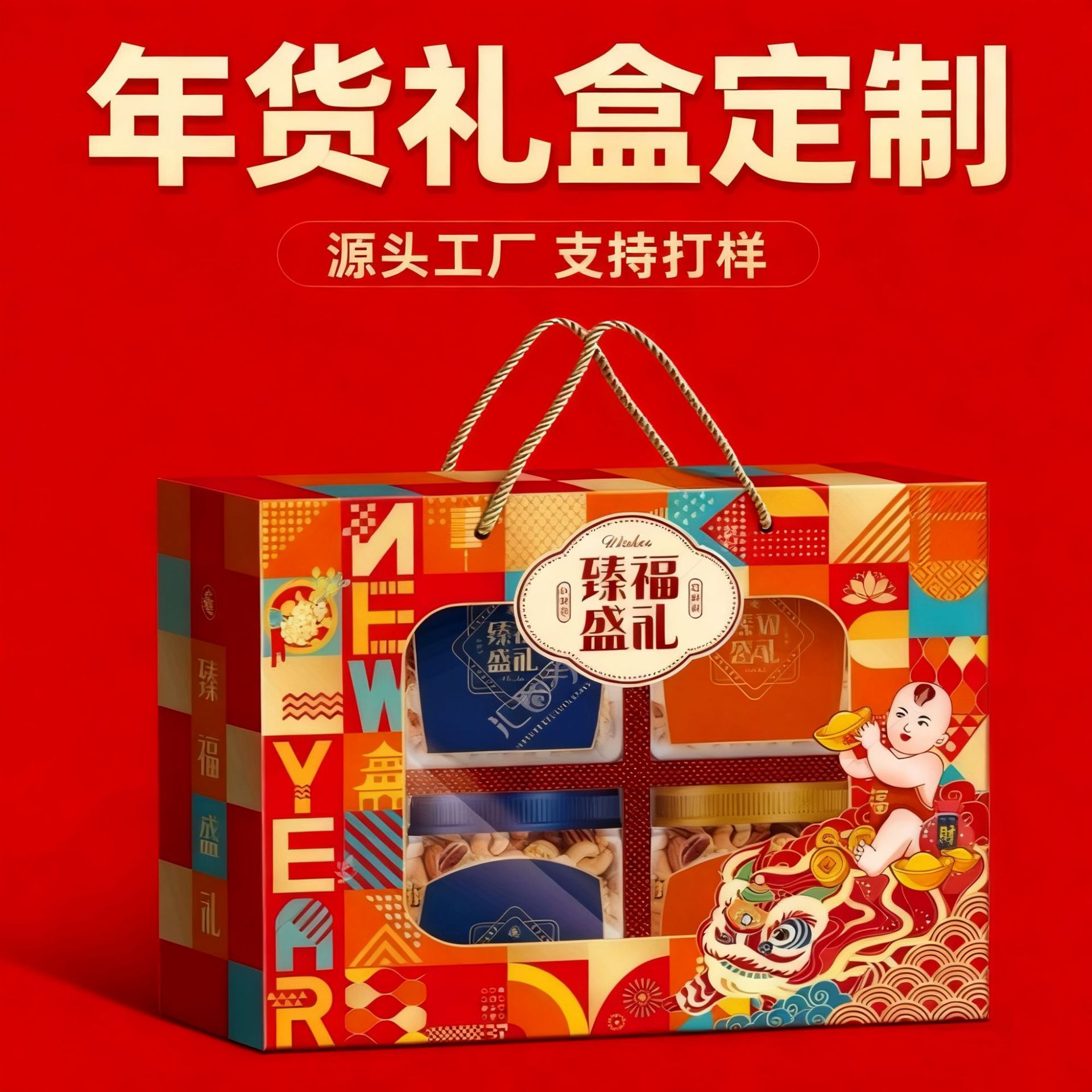 新年礼盒定制空盒开窗马年礼盒坚果土特产春节送礼年货包装盒定制