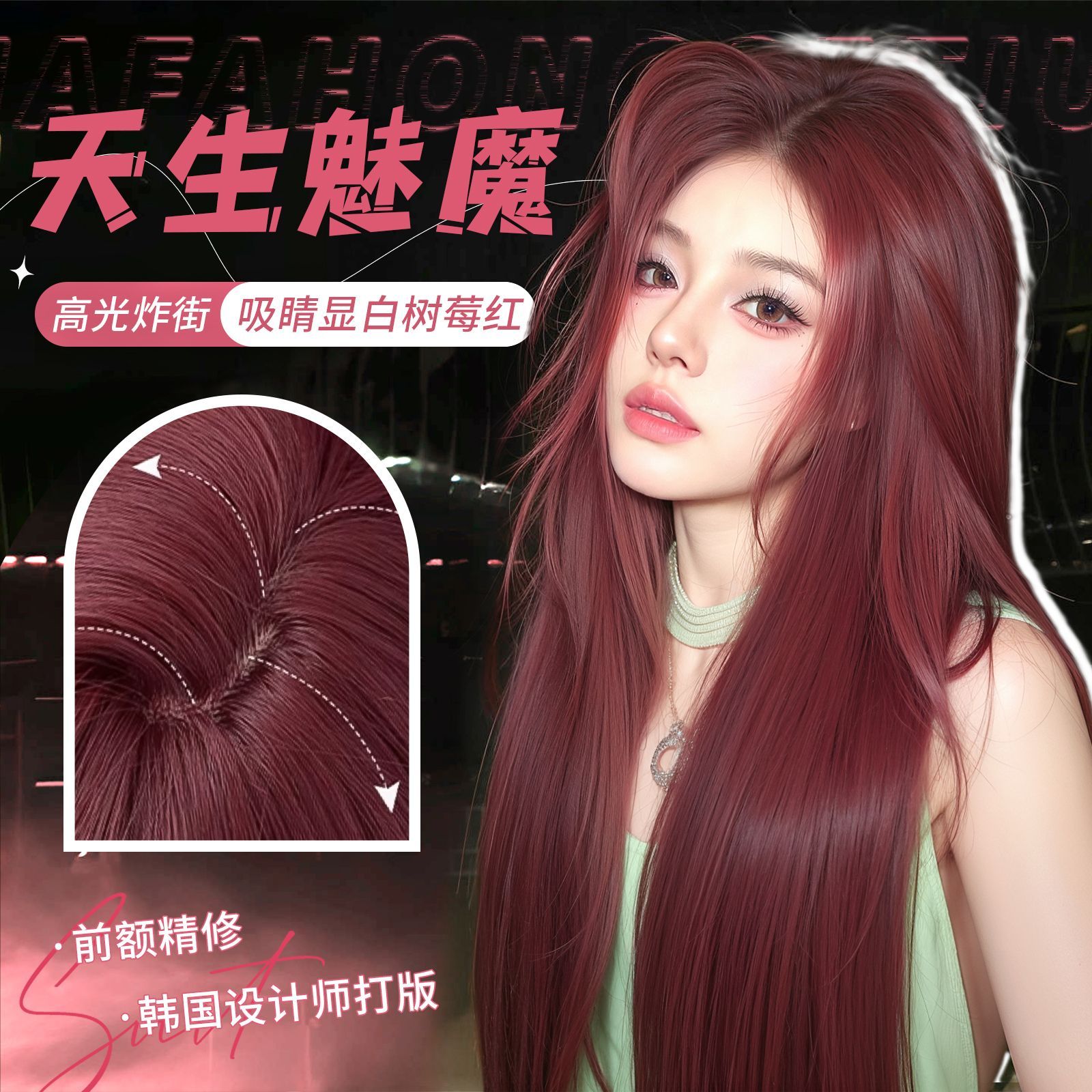 【天生魅魔】假发全头套女小额蕾丝树莓红长直发透气蓬松假发套