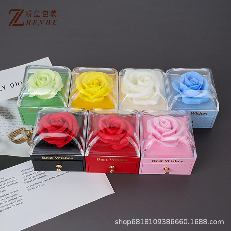 新款马卡龙色系抽屉式玫瑰花首饰盒戒指项链精致收纳厂家直销批发