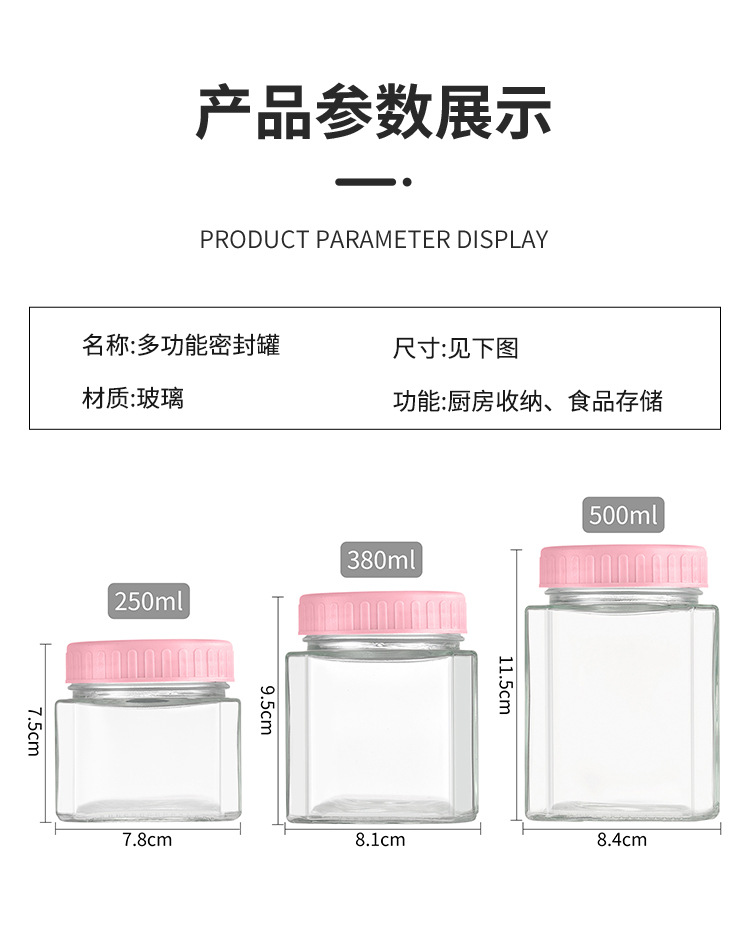 透明ガラス調味料瓶角型ガラス貯蔵タンク唐辛子麺胡椒粉分注瓶鶏精味の素密封瓶