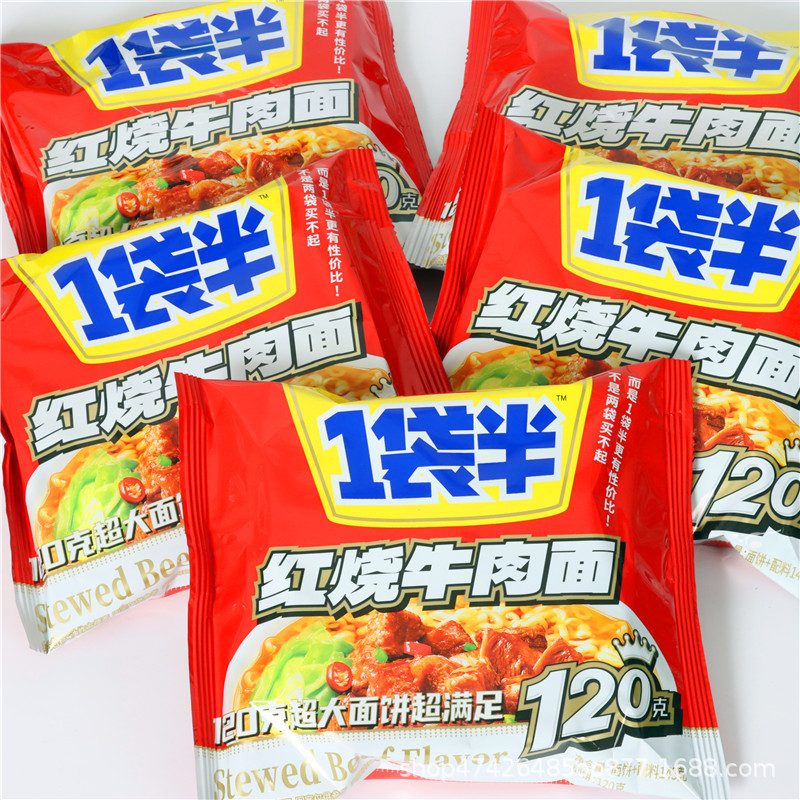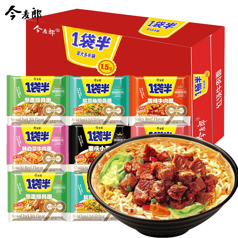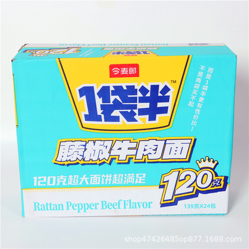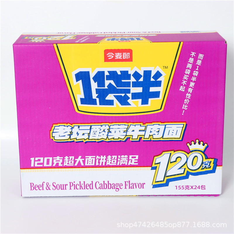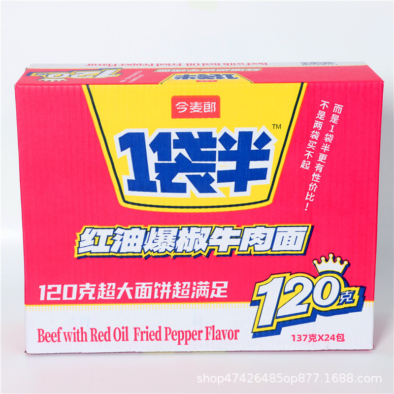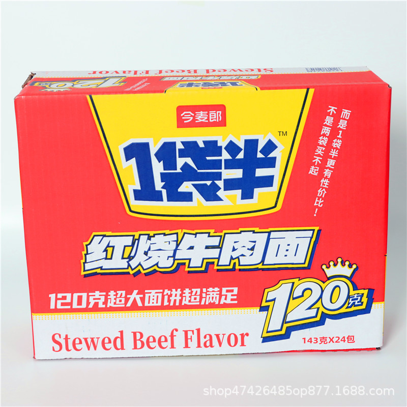 包郵便今麦郎一袋半インスタントラーメン24袋全箱赤焼牛肉麺夜食代食インスタントラーメン卸売り