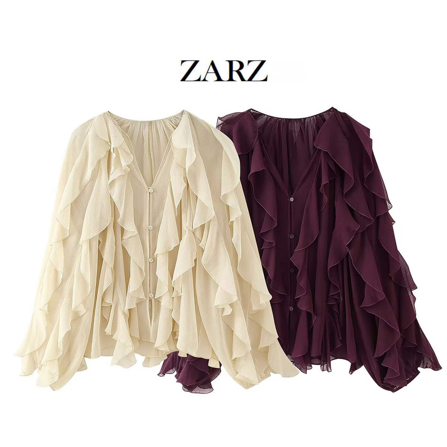 ZARZ自作欧米風新型女装クラシックファッション百合積層装飾シャツ4786063