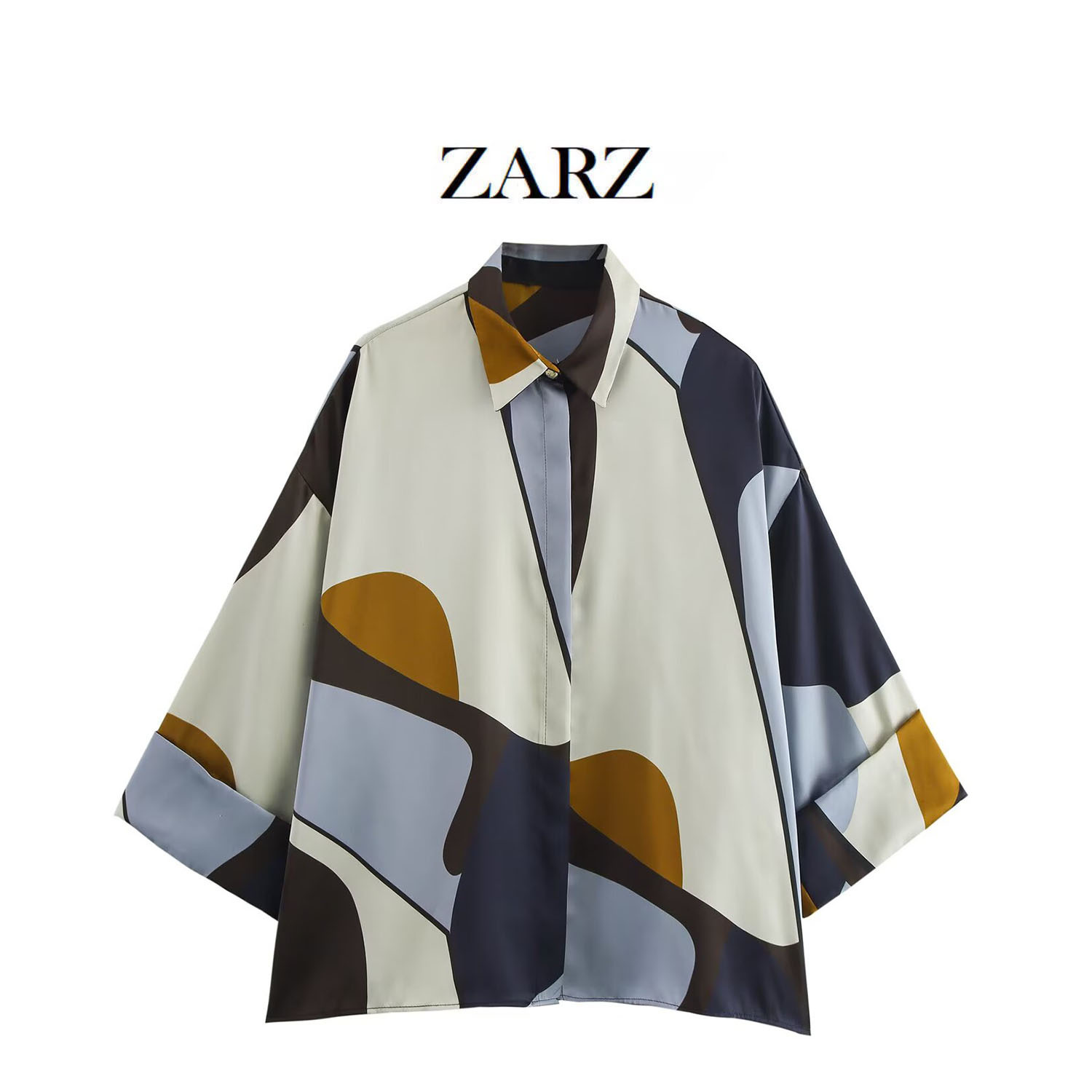 ZARZ自作欧米風新型女装クラシックファッションシルクサテン質感プリントシャツ2480124