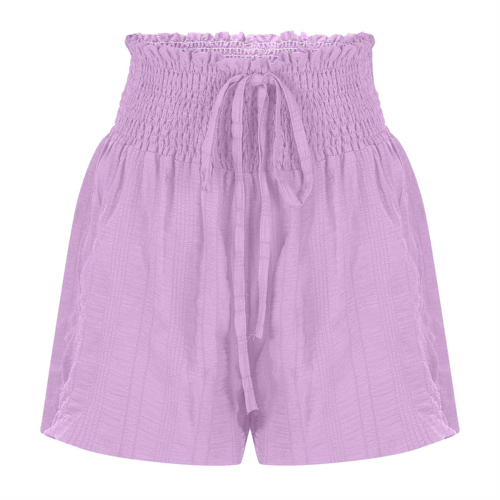 発票可能、アマゾン越境販売、伸縮性のある紐付きゆったりカジュアルパンツ、夏の人気商品、綿麻素材、ポケット付きワイドレッグショートパンツ(女性用)