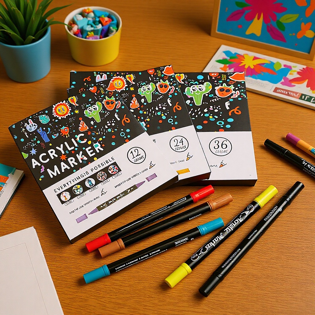 双头丙烯马克笔不透色可叠色软头儿童美术专用彩色画笔亚马逊同款