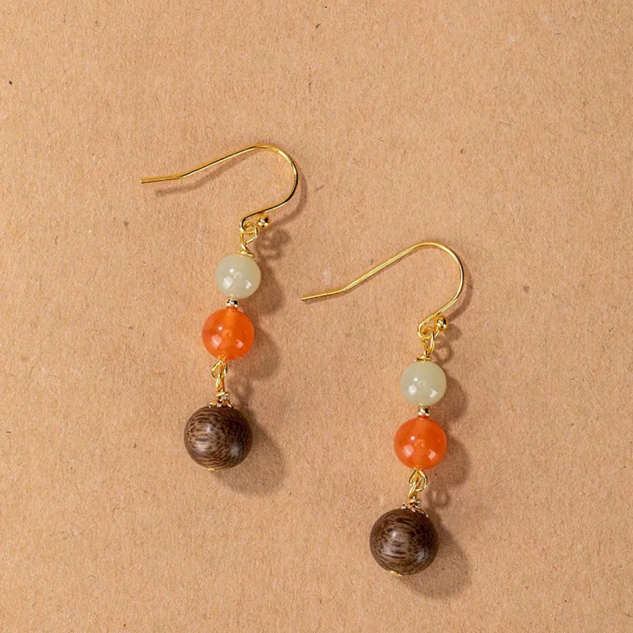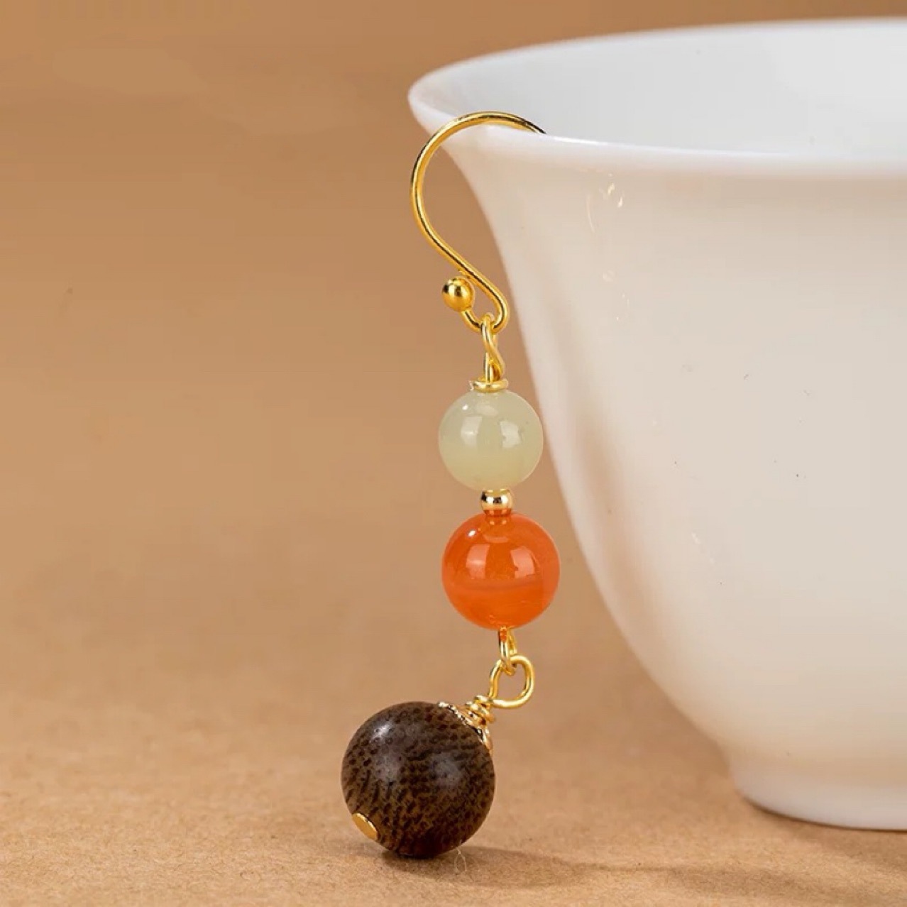 新商品国風925銀金メッキ耳フック天然沈香淡水真珠イヤリング南紅和田玉イヤリング