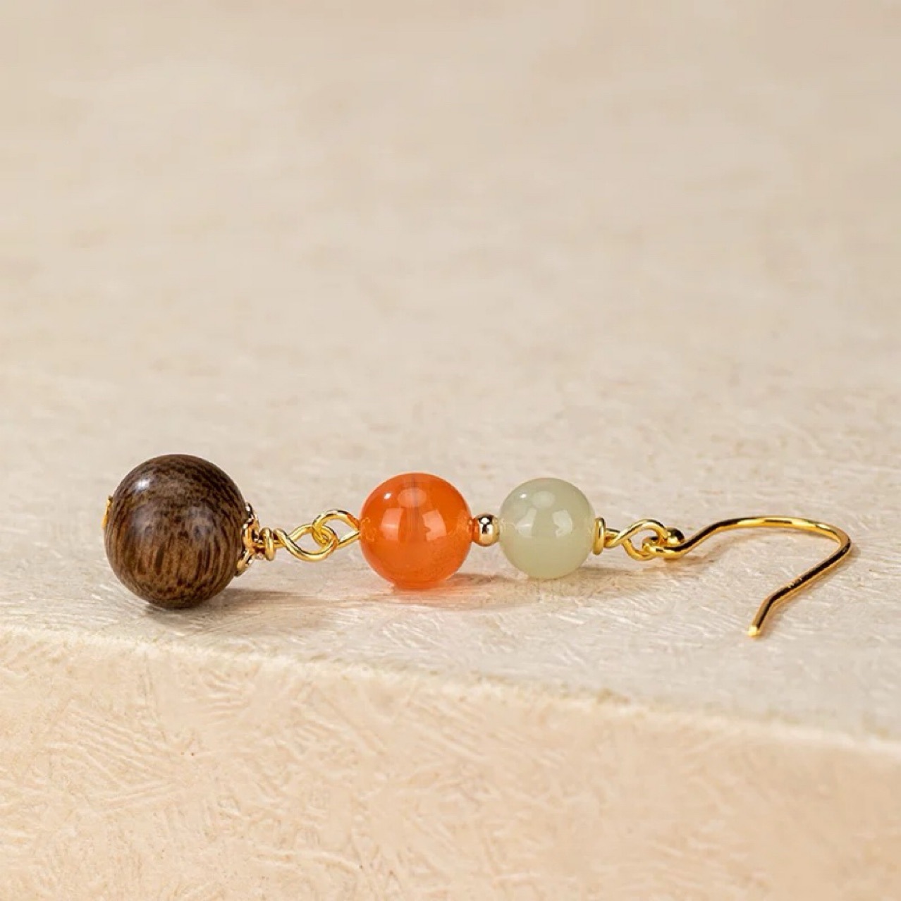 EH208-12 天然沈香 南紅 和田玉 ピアス