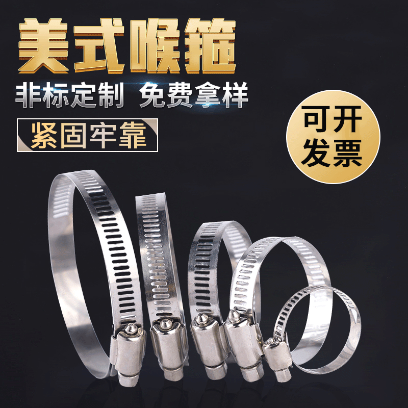 ステンレス製ホースクランプ、ステンレスシリーズホースクランプ、アメリカンタイプホースクランプ、クランプ、抱き締めクランプ、卸売販売、締め付け具の供給