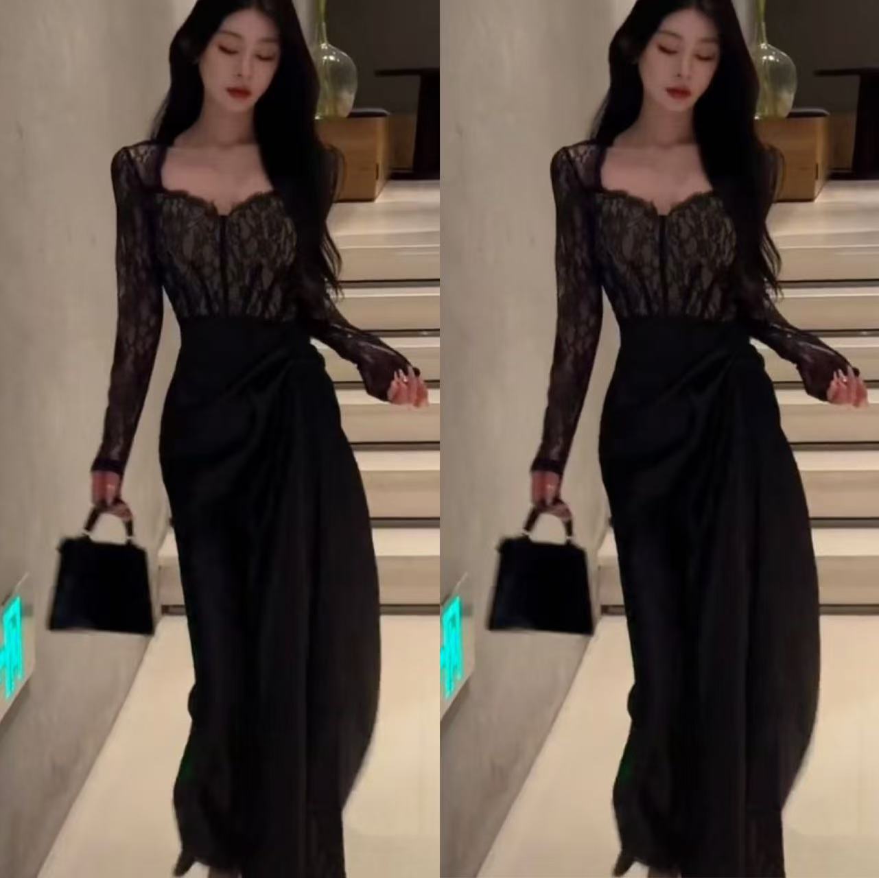 ヨーロッパ駅の2023年秋の新型の気質の優雅なワンピースの女性は腰を収めてやせているファッションの洋気が膝の魚尾のスカートを越えます。