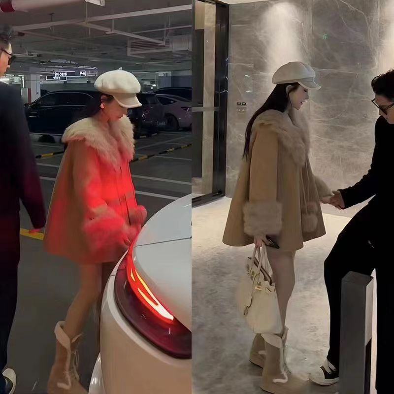ヨーロッパ駅ファッション名媛女装2024秋冬新作純色毛羽襟ゆるい減齢ネット版百合コート