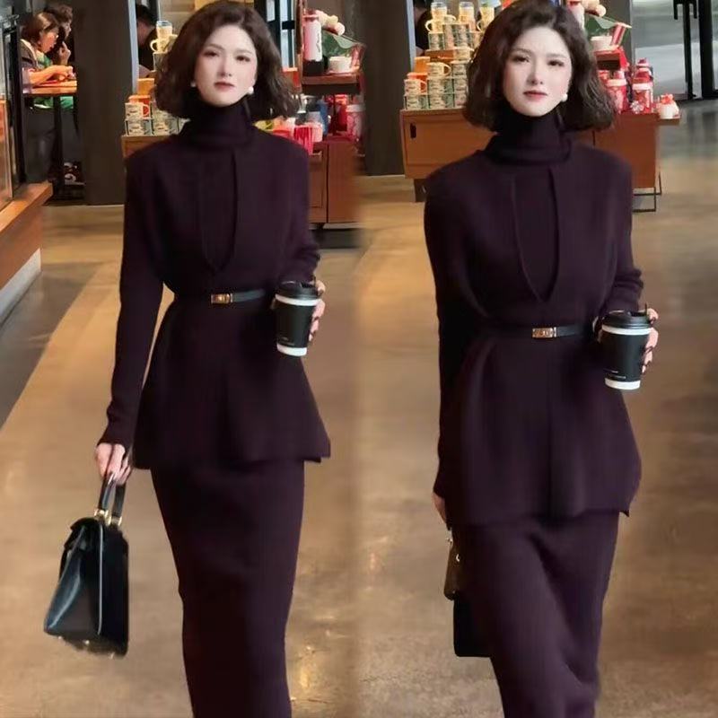 韩版遮肉时尚气质2025冬季新款上衣半身裙两件套通勤修身显瘦套装
