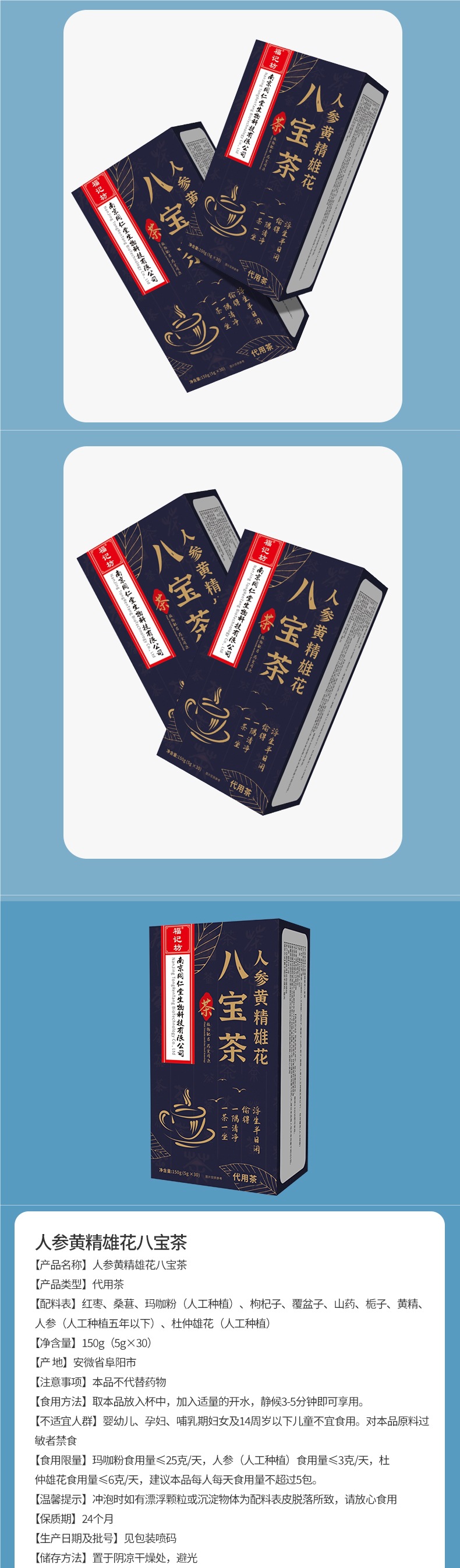 五宝八宝茶人参桑実クコ茶男腎補精強腎非男性持続養腎九宝養生茶