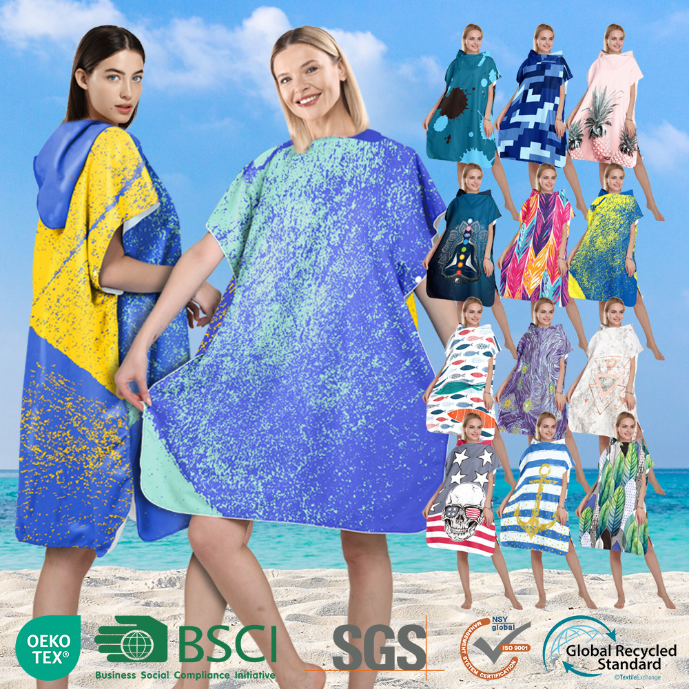 国境を越えた売れ筋の速乾性マント、バスローブ、大人用両面ベルベットフード付きビーチタオル、水泳やダイビングの着替えバスローブ