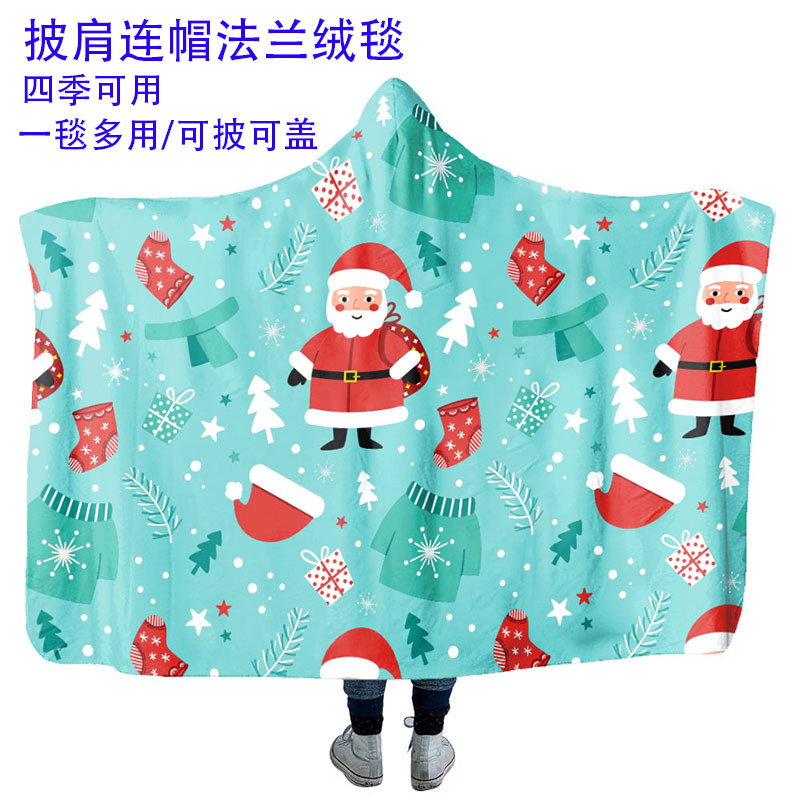 クロスボーダーフランネルフード付きウェアラブルブランケットデジタルプリントマントショールブランケット厚みのあるソファカバーブランケットレイジーブランケット