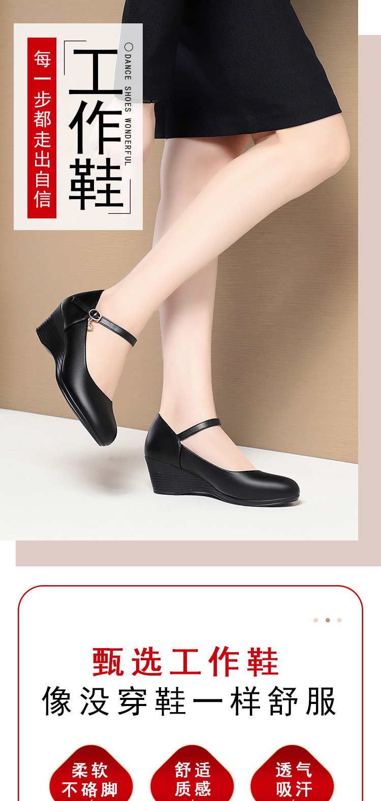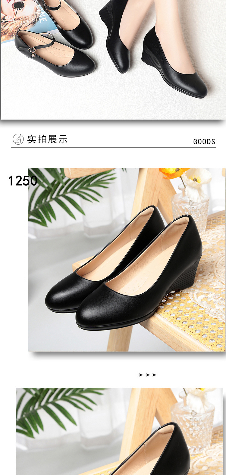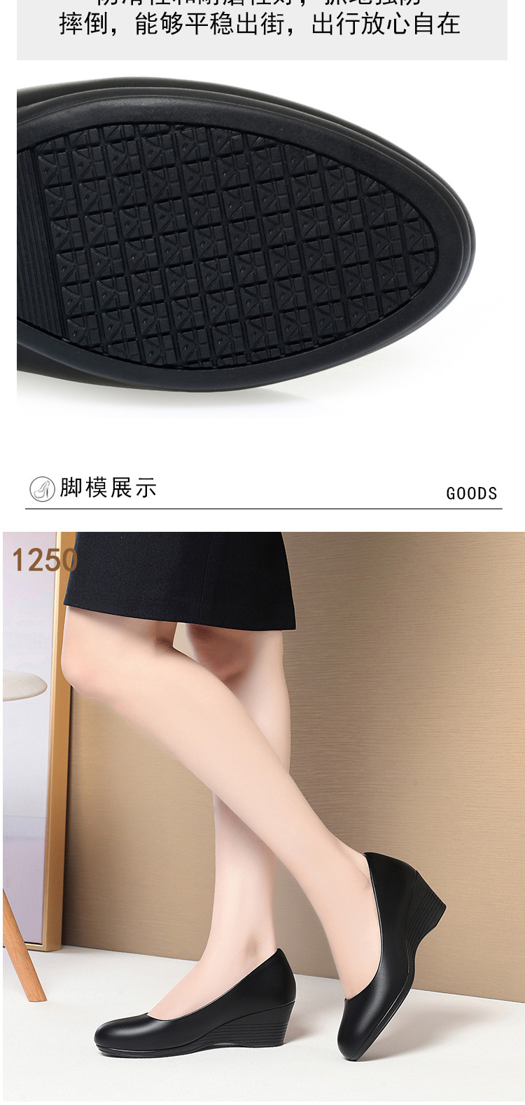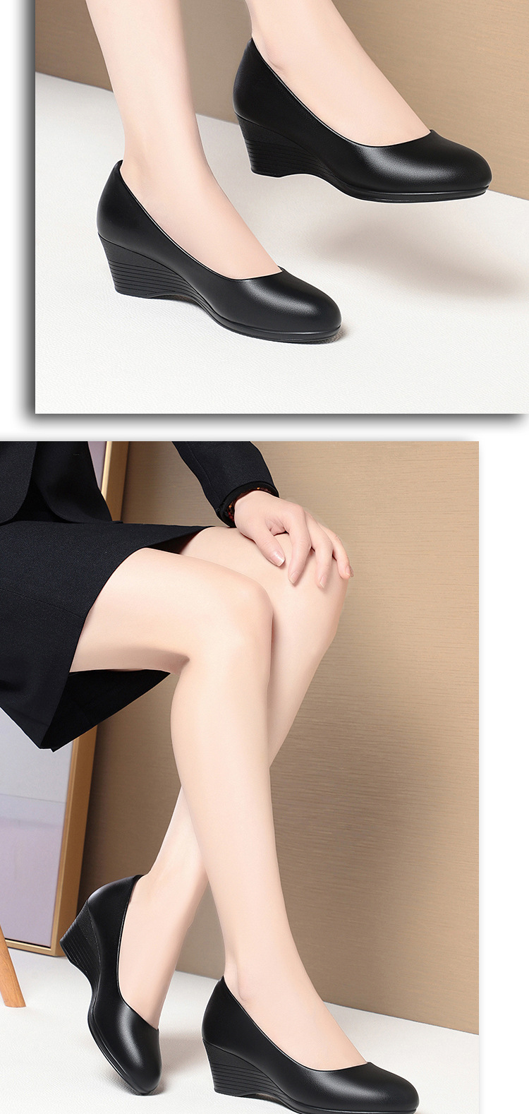 客室乗務員用ウェッジヒールシューズ、ソフトレザー、ソフトソール、レディースワークシューズ、ブラック、オフィス、ビジネスレザーシューズ、女性用、ワンピース、卸売