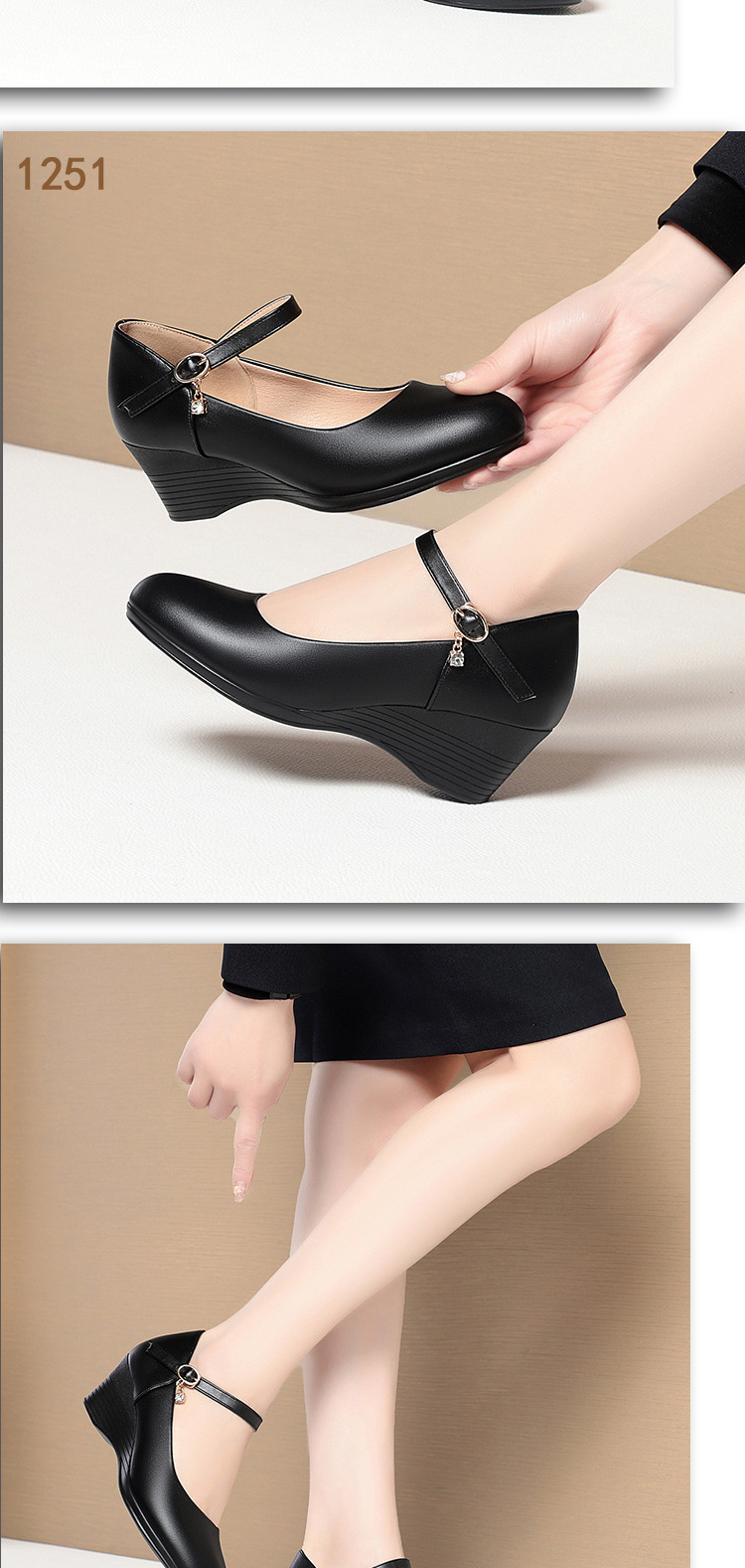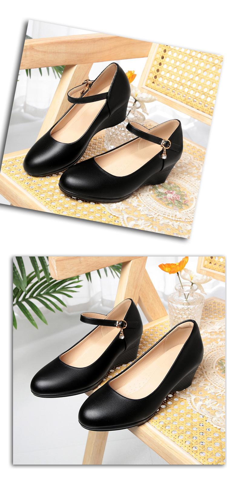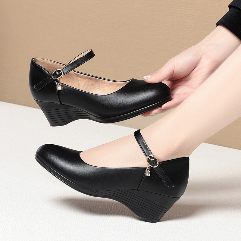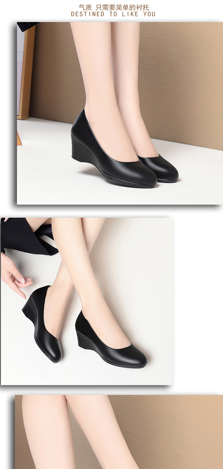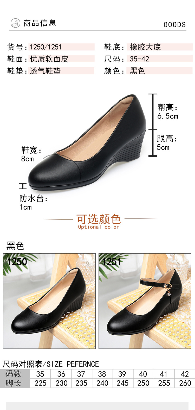 客室乗務員用ウェッジヒールシューズ、ソフトレザー、ソフトソール、レディースワークシューズ、ブラック、オフィス、ビジネスレザーシューズ、女性用、ワンピース、卸売