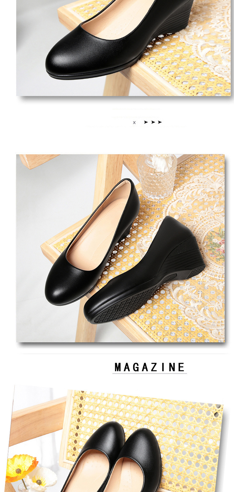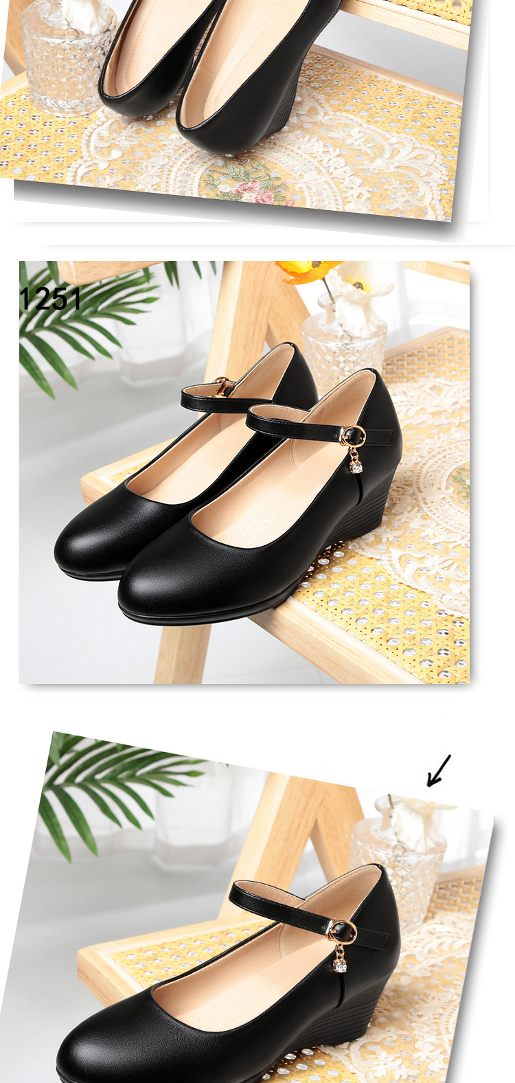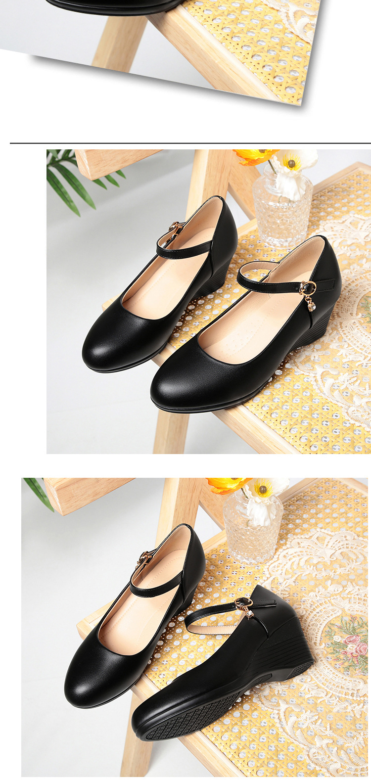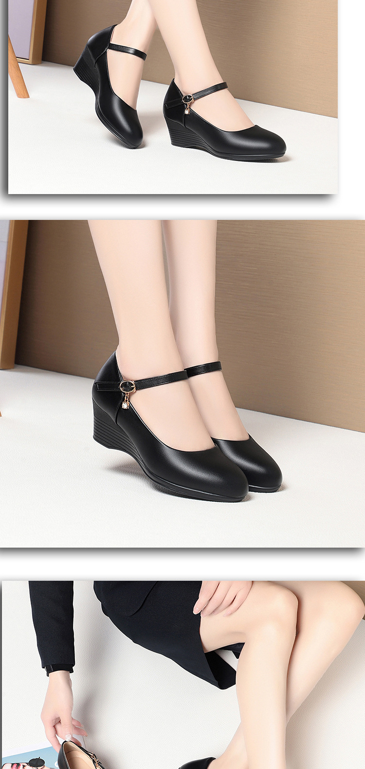 客室乗務員用ウェッジヒールシューズ、ソフトレザー、ソフトソール、レディースワークシューズ、ブラック、オフィス、ビジネスレザーシューズ、女性用、ワンピース、卸売