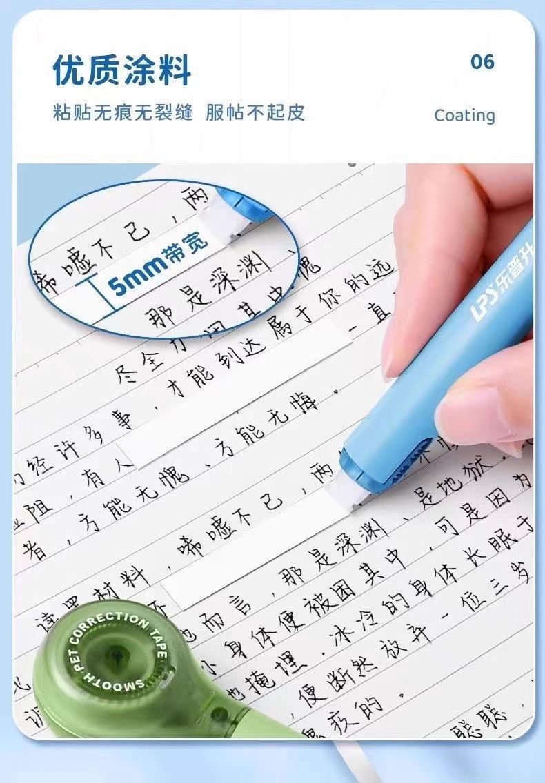 乐普升笔式修正带学生用涂改带替换芯大容量高颜值顺滑不卡改正带