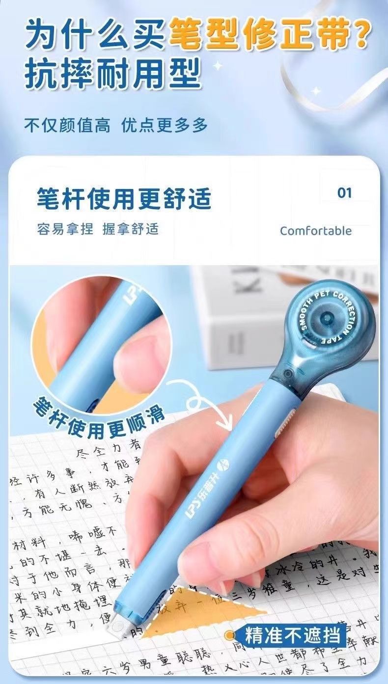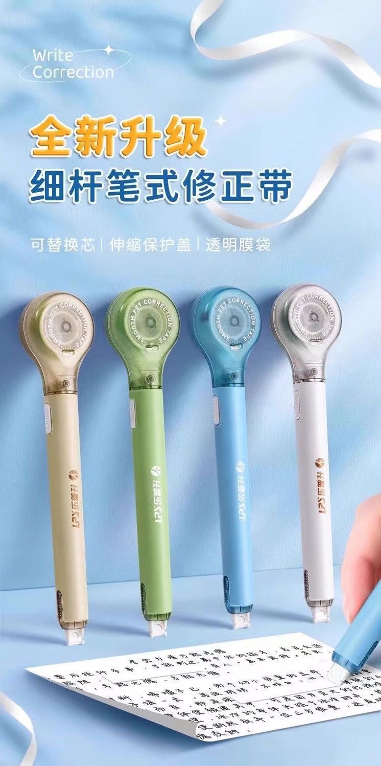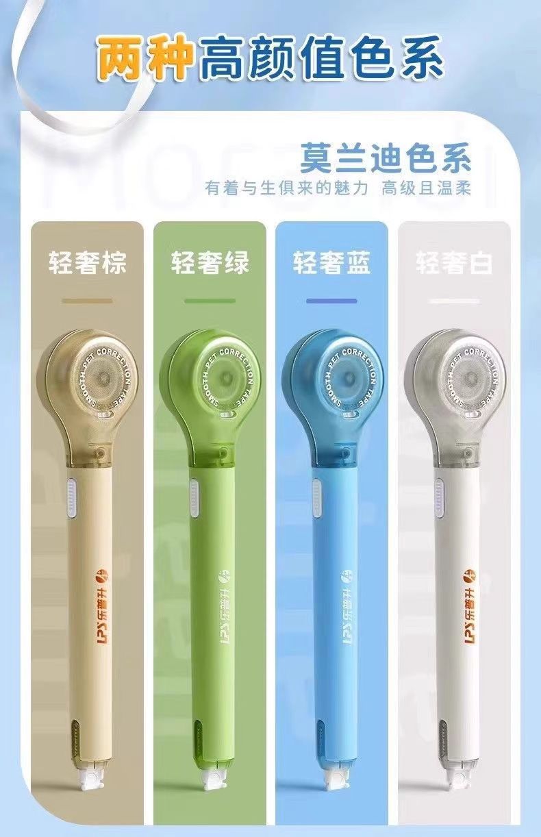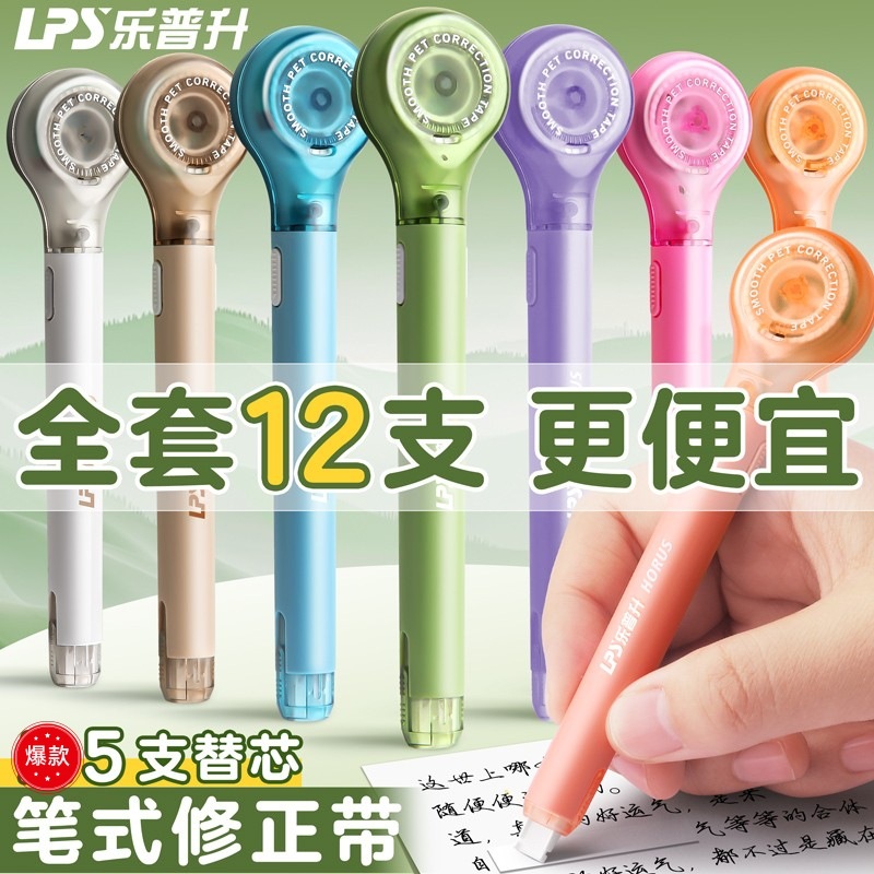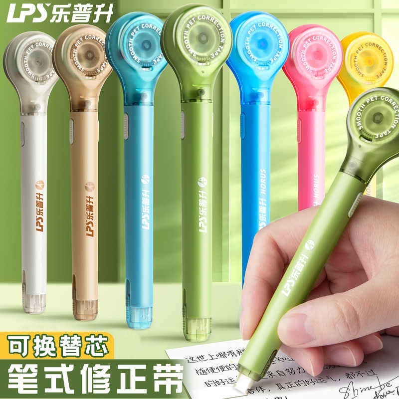 2025新款高颜值乐普升笔式修正带学生涂改大容量改错静音可替换芯