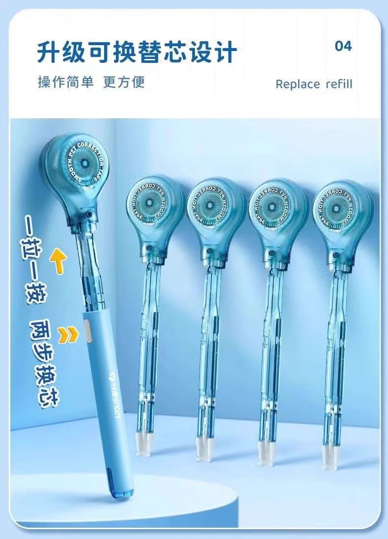 Lepusheng 9189 修正テープ、交換可能な芯付き、学生向けの高価値特殊修正テープ、大容量ペン型修正テープ