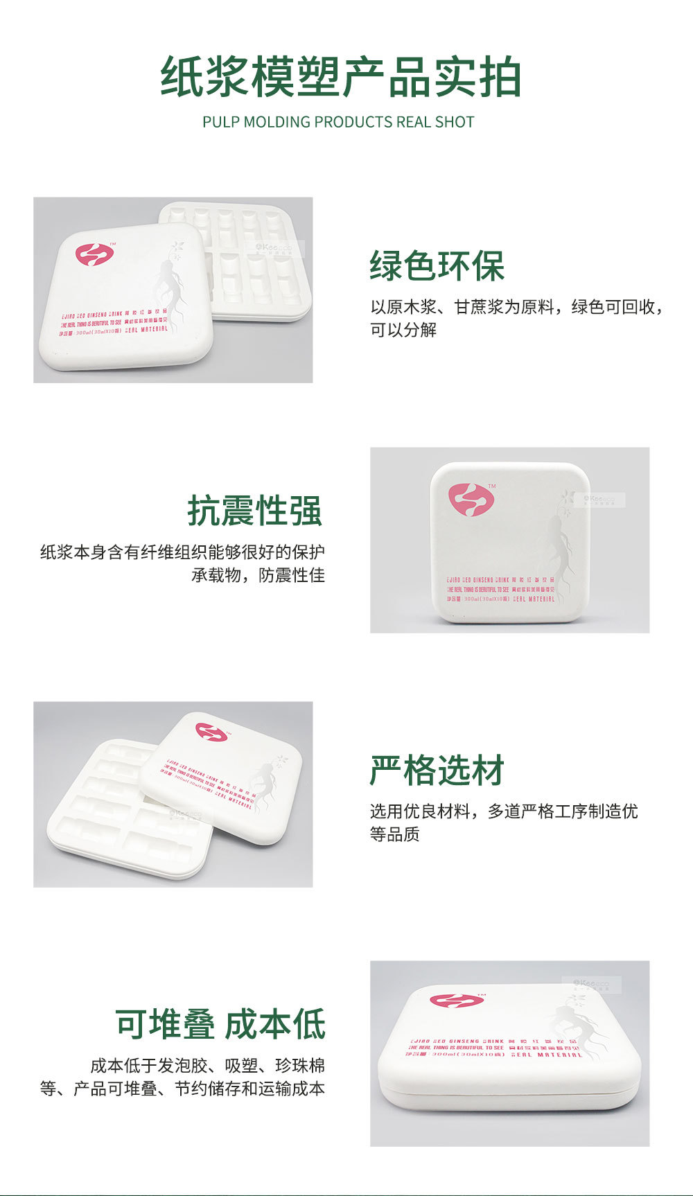 スキンケア小安瓶紙塑性内托パルプ箱冷凍乾燥粉類紙塑性内托全分解材質形状オプション