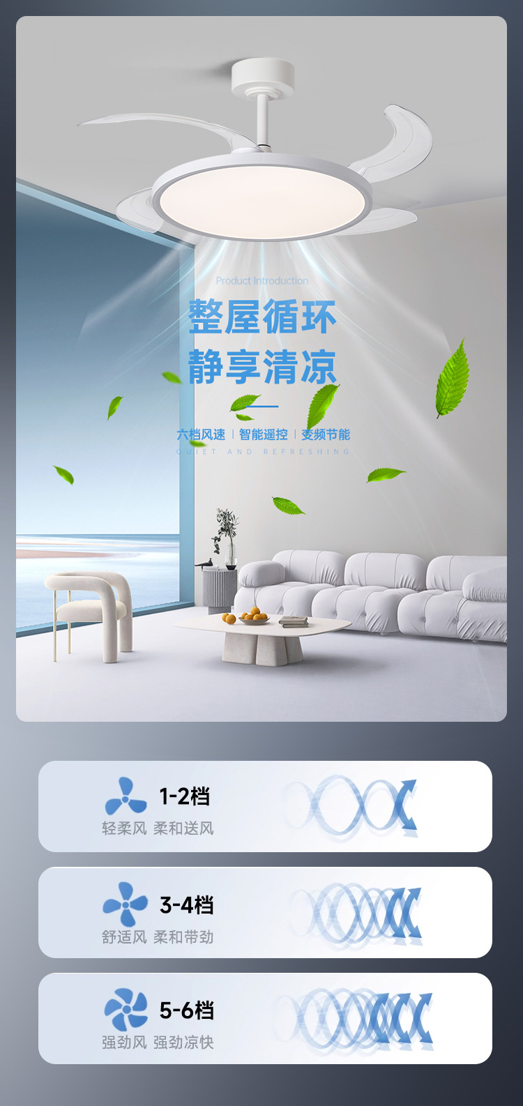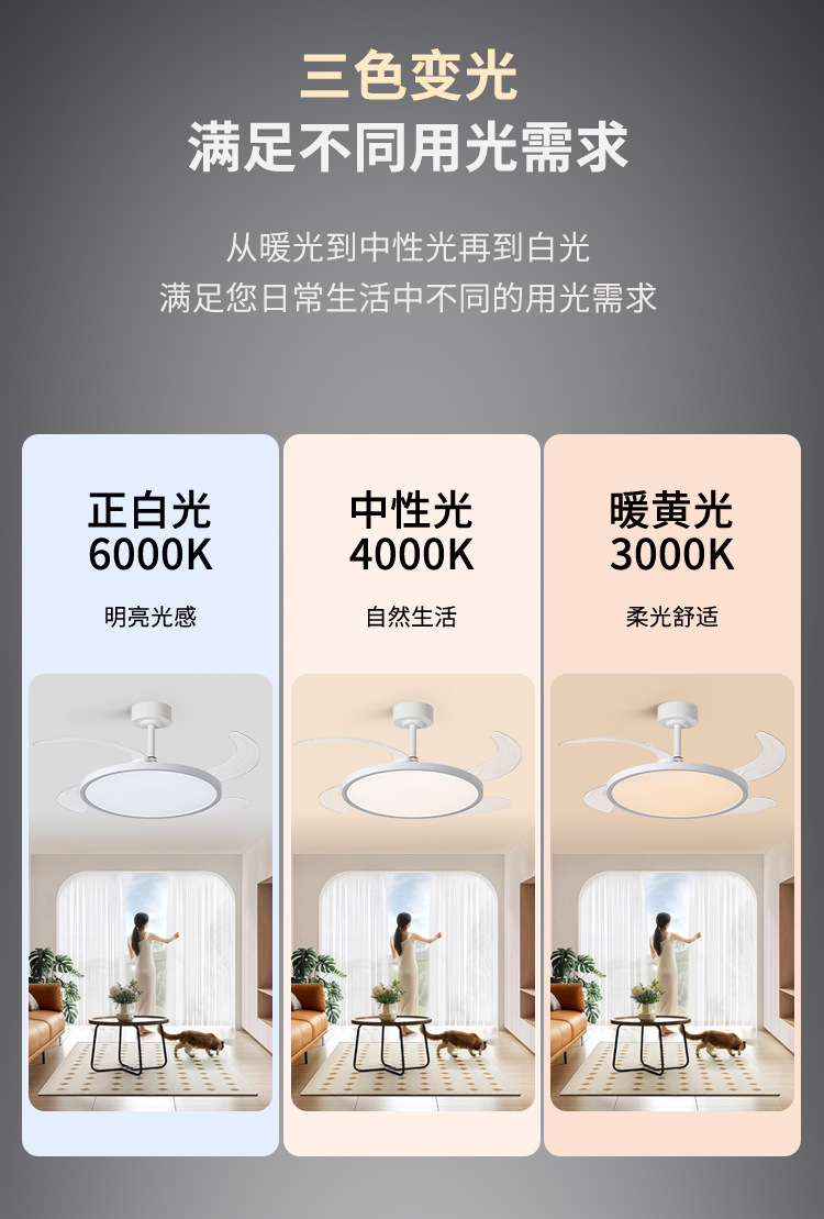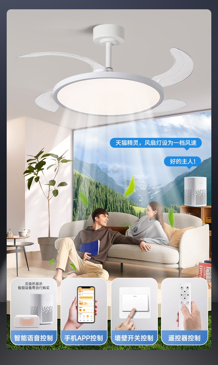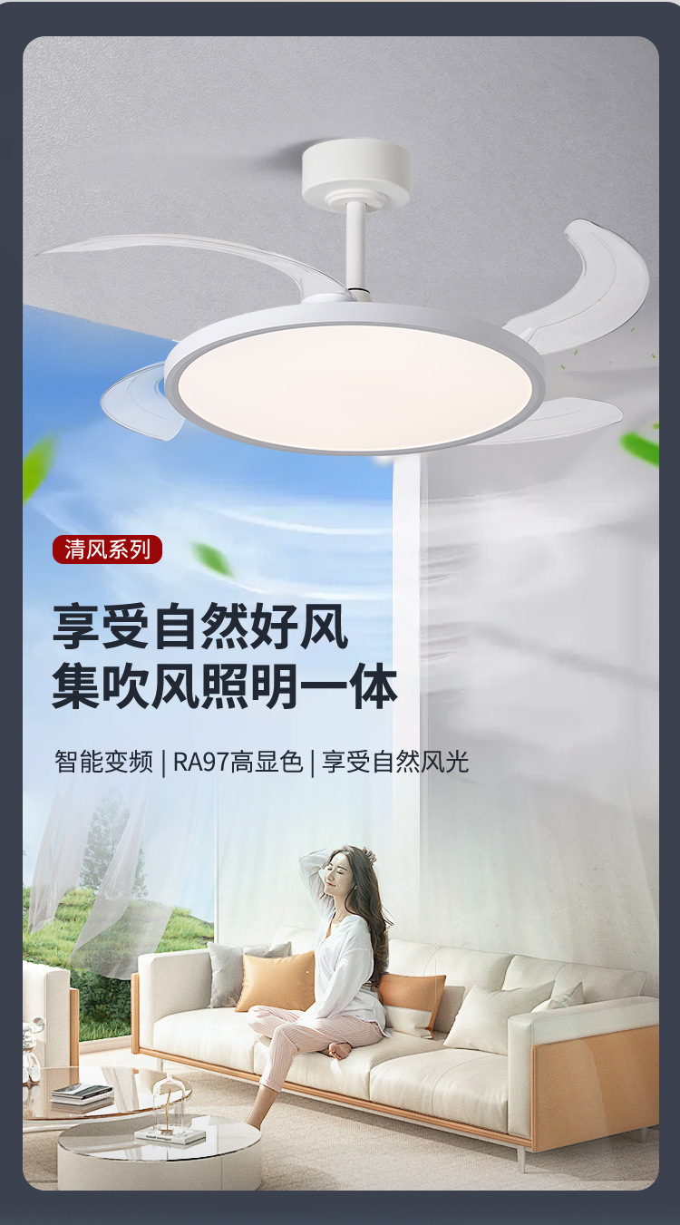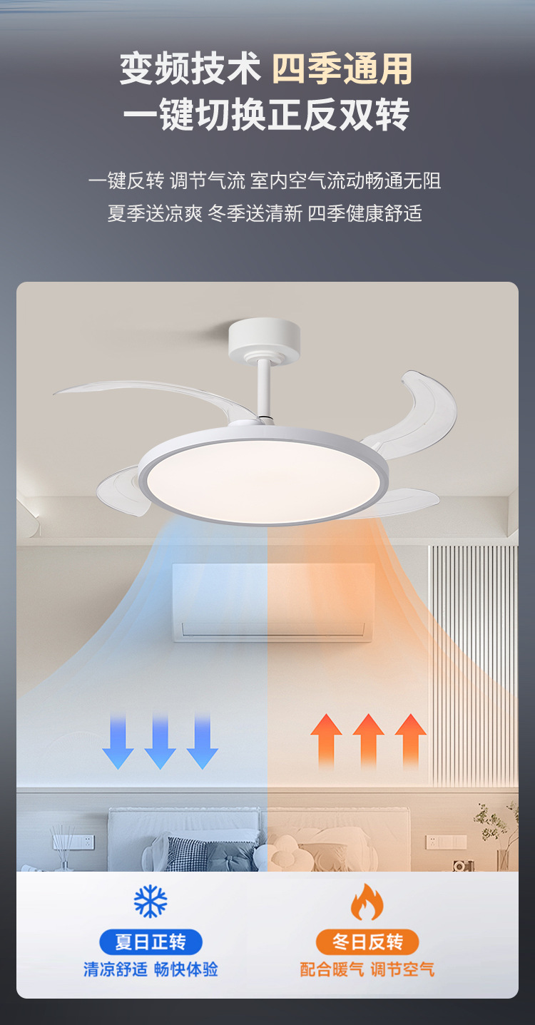智能变频风扇灯餐厅吊扇灯客厅隐形风扇灯全光谱护眼卧室吸顶灯