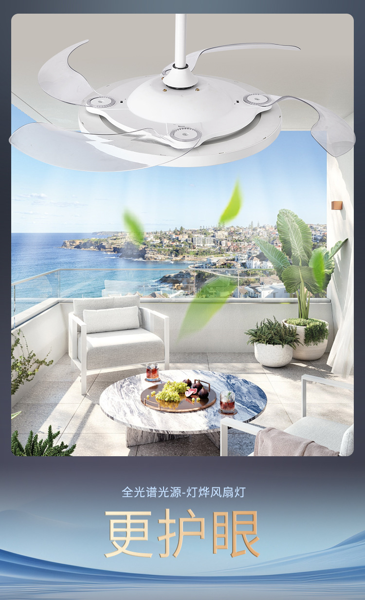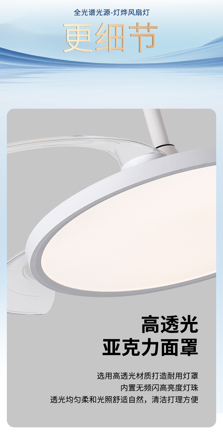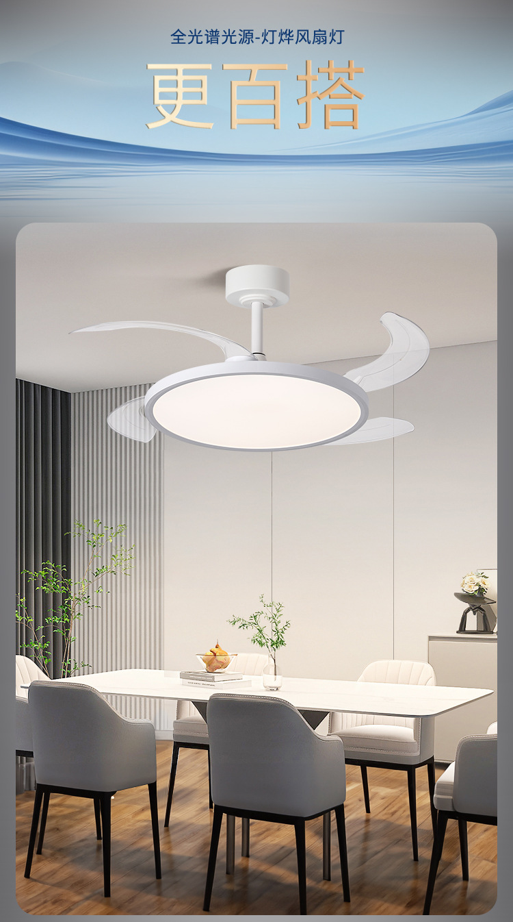 新型超薄型ファンランプ周波数変換ステルス電気ファンランプ全スペクトル保護眼静音ファンランプレストランファンシャンデリア