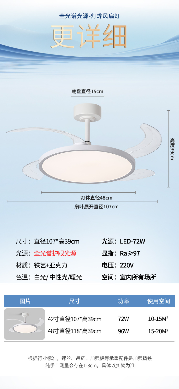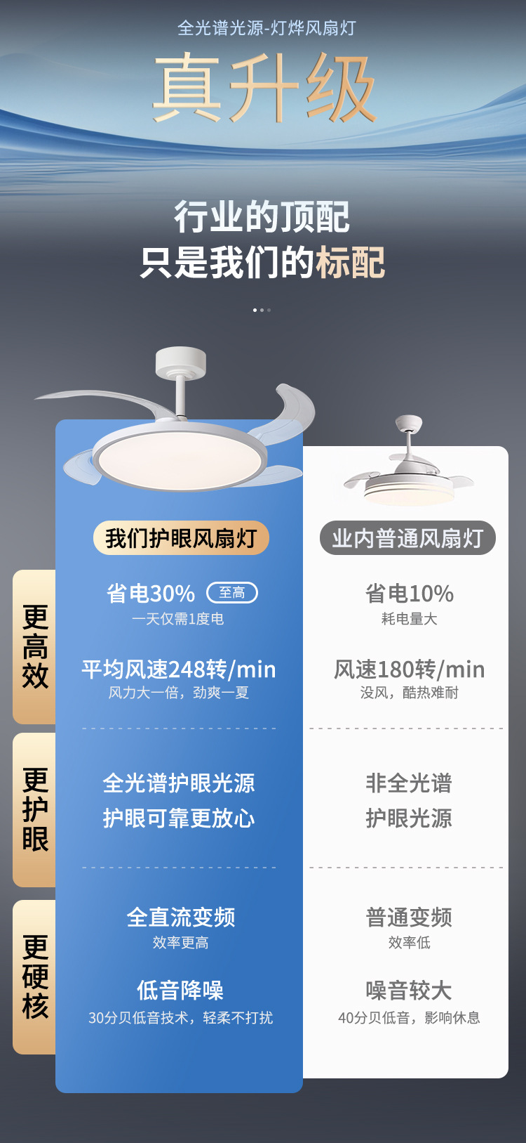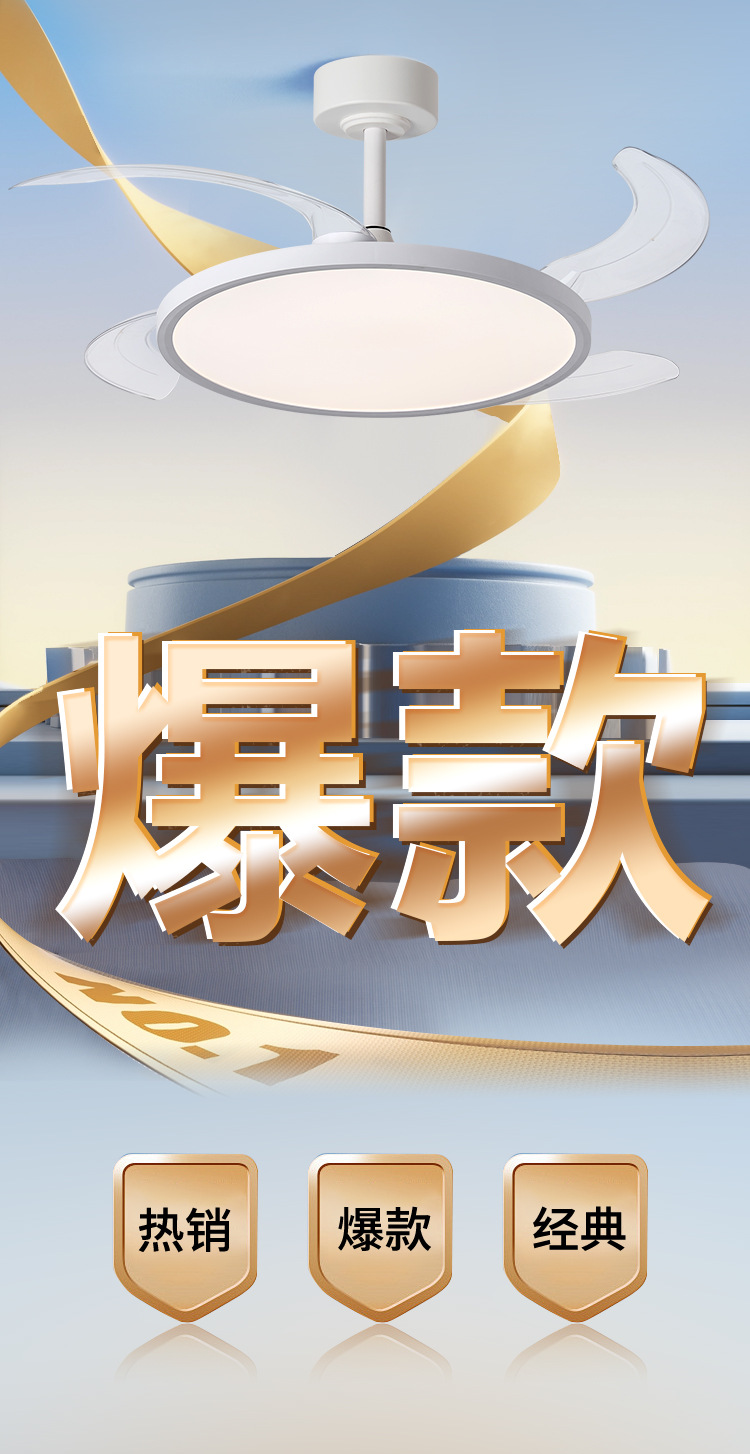 新型超薄型ファンランプ周波数変換ステルス電気ファンランプ全スペクトル保護眼静音ファンランプレストランファンシャンデリア