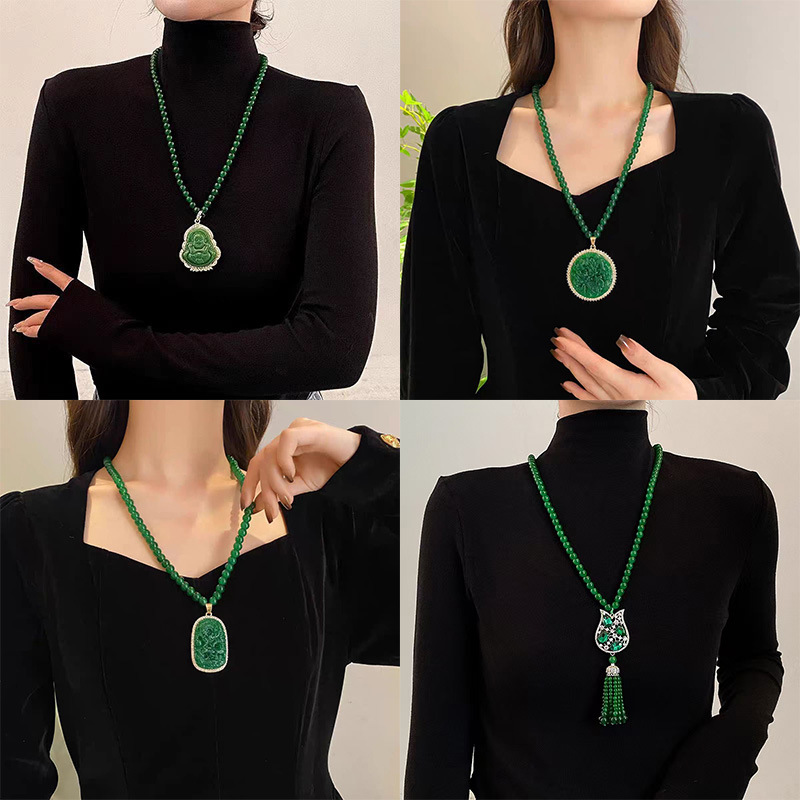 新中式祖母绿毛衣链秋冬时尚百搭高级感项链如意轻奢衣服配饰挂件