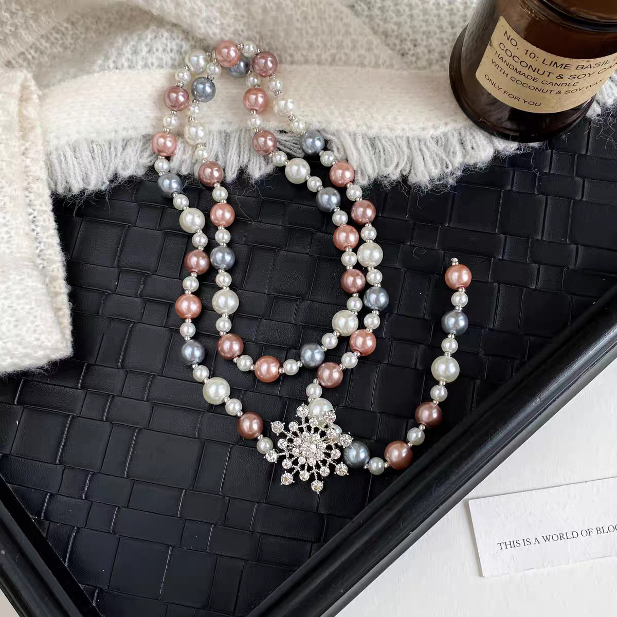 二重正円施家真珠ネックレス女性磁気吸引ボタンファッション軽豪華鎖骨鎖小衆ファッション優雅毛衣鎖