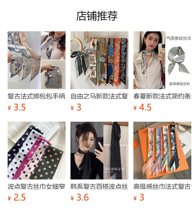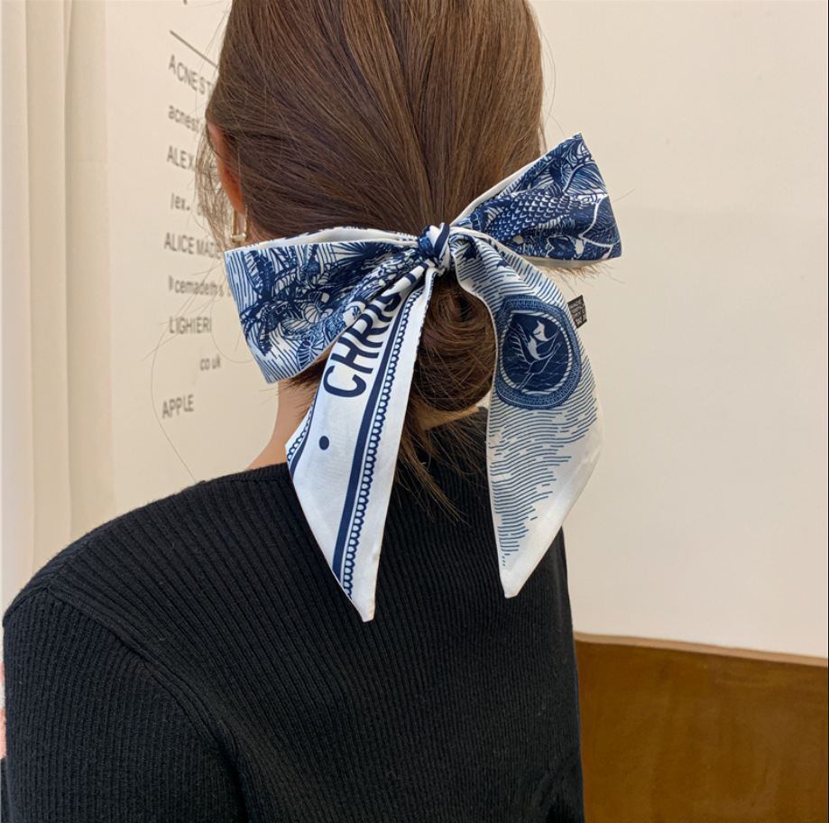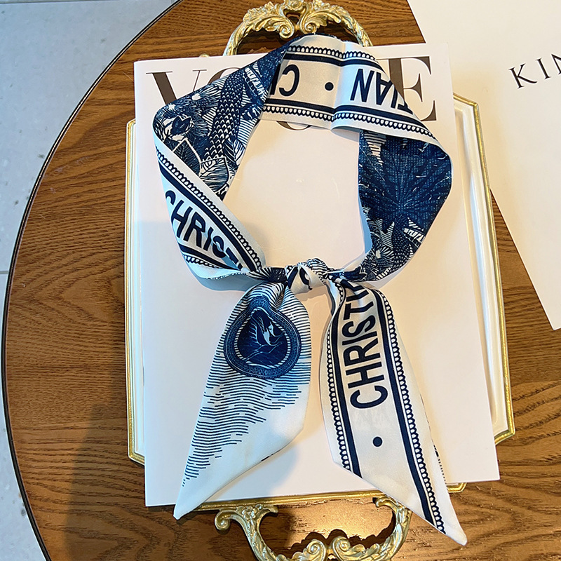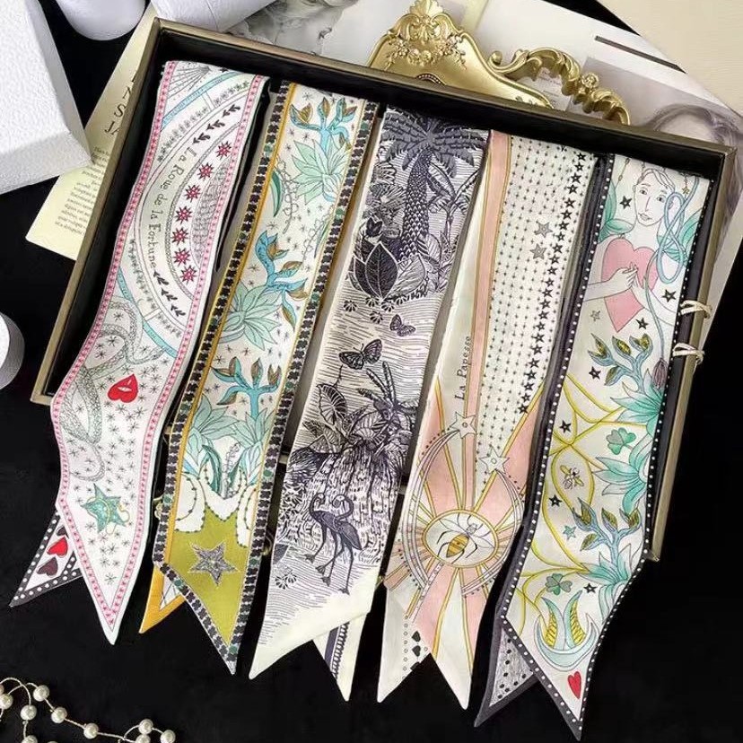 フレンチレトロ風花柄シルクスカーフ、新作多用途ネックタイ、バッグハンドル装飾、おしゃれなヘアバンド、リボンアクセサリー