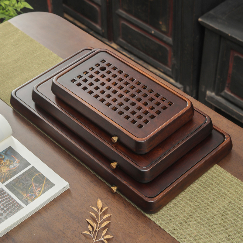 黒檀茶トレイ新中国風木製トレイ長方形ハンドルティーセット茶トレイホームホテル茶トレイ卸売