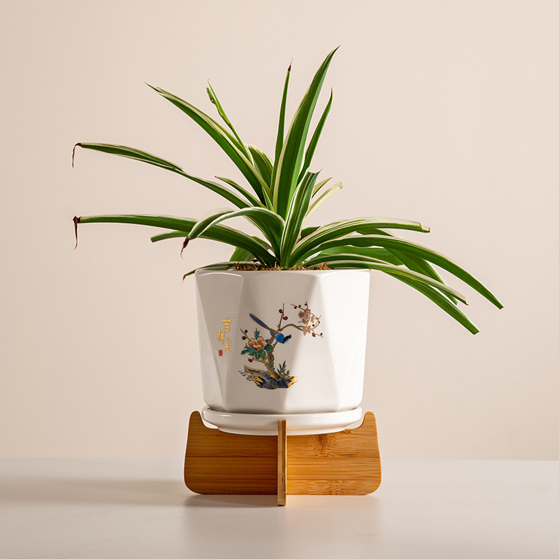 陶磁器の植木鉢の竹の棚の蘭の緑は緑の羅の盆地を植えてパレットの創意の事務室を持って竹の木の製品の卸売りを並べます。