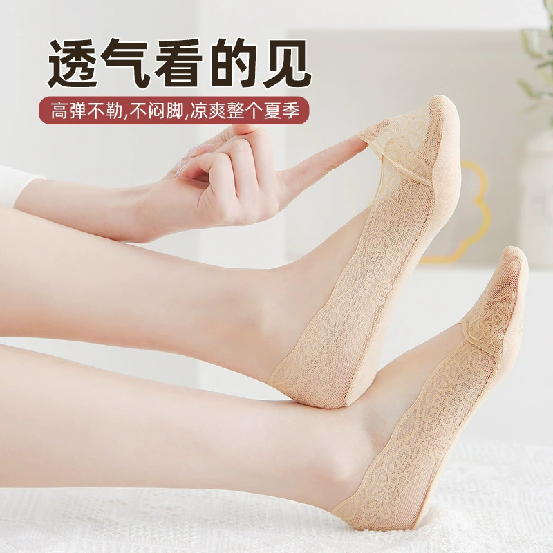 レースの靴下の女性は見えない女性の靴下の夏の新しい通気性が低い女性のシリコンの靴下の女性の卸売りに落ちない