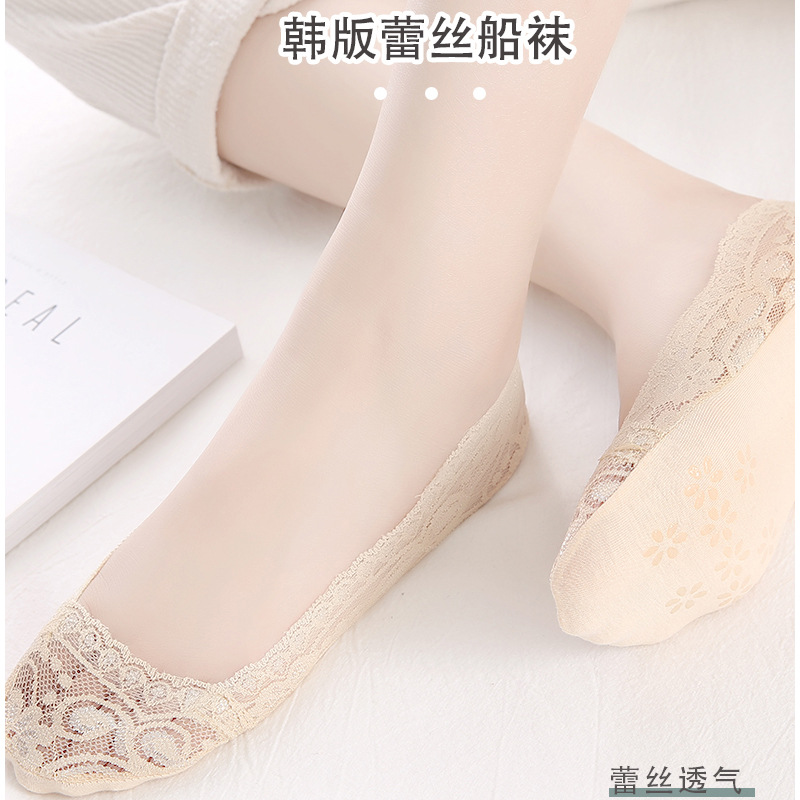 蘭楓霊船の靴下の女性のレースの浅い口のシリカゲルの滑り止めの韓国版の透かし彫りの春と秋の薄いタイプの隠れた靴下