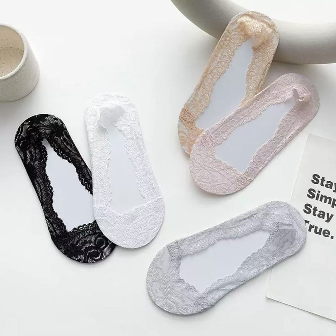 夏用薄手レースソックス、レディースショートソックス、インビジブルソックス、シリコン脱落防止ヒール、肌色超浅口ボートソックスセット