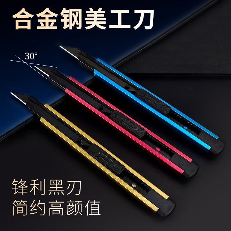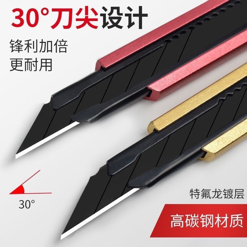有力美工刀30度トランペット壁紙刀黒刃60度ステンレス裁断紙膜金属刀美術刀