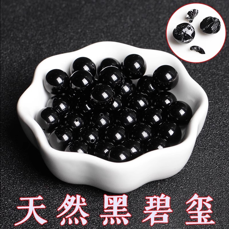 天然黒碧璽散珠diy数珠水晶玉アクセサリーブレスレット黒一個仏珠手串