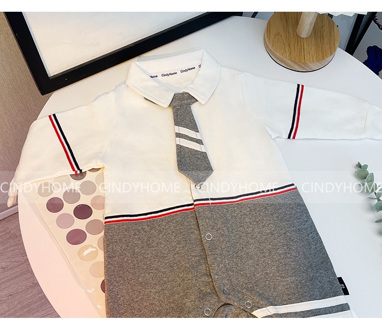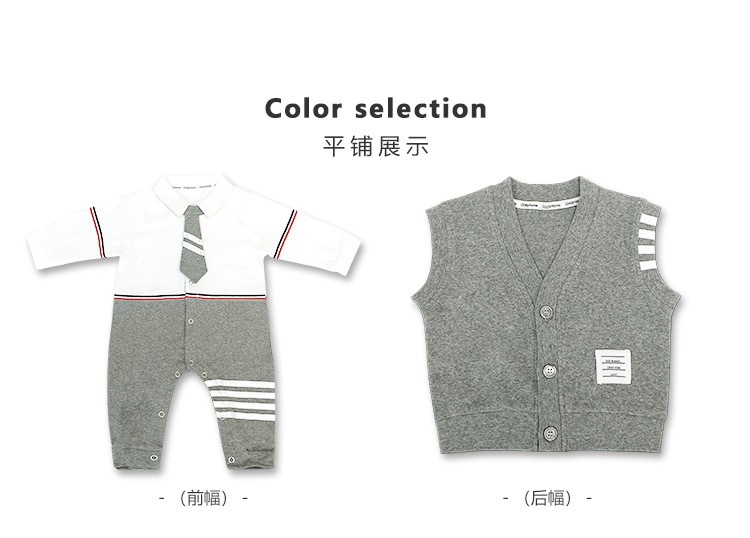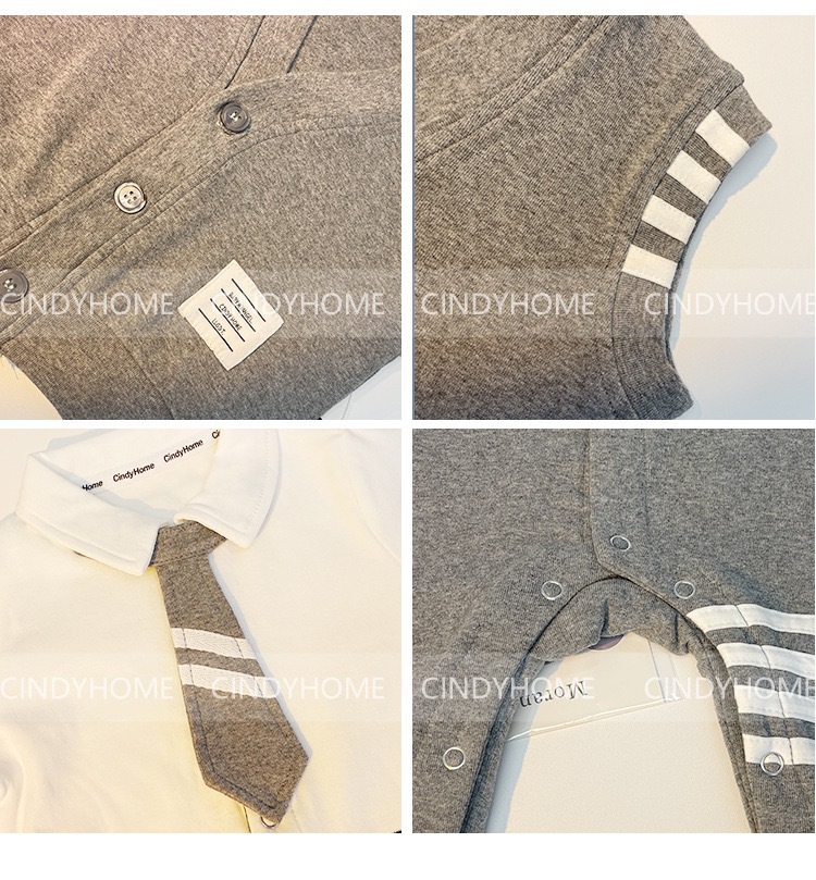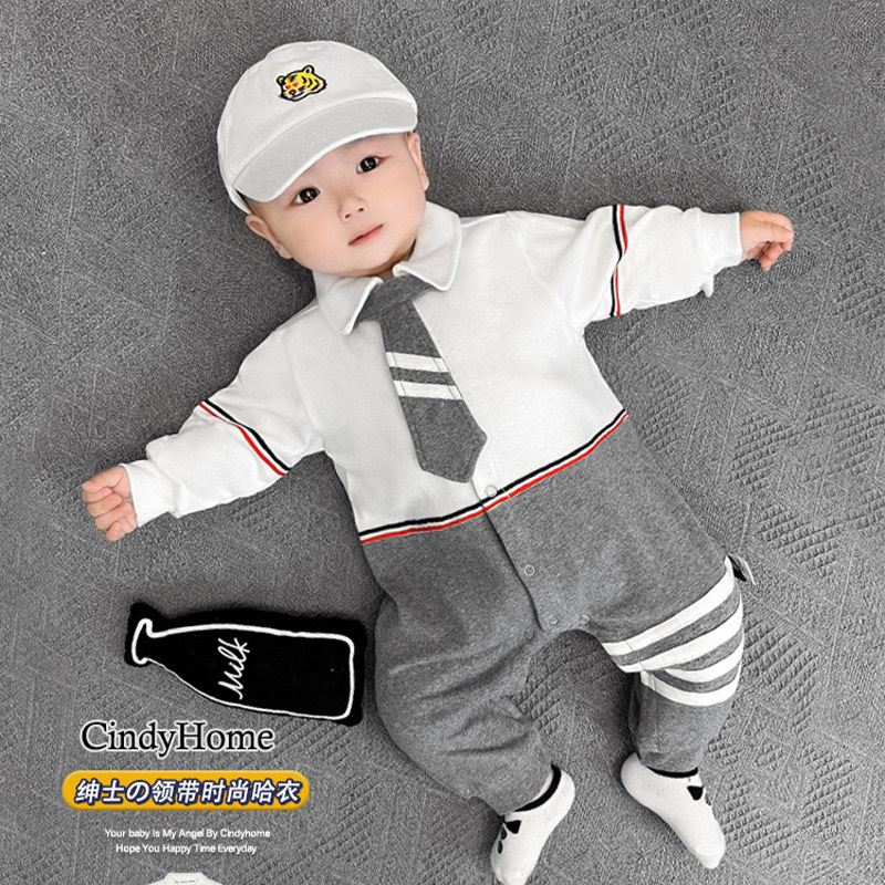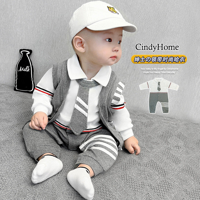 英倫風の赤ちゃんの連体服春秋の純綿の洋気の紳士の男の子の赤ちゃんの満月の百日の服
