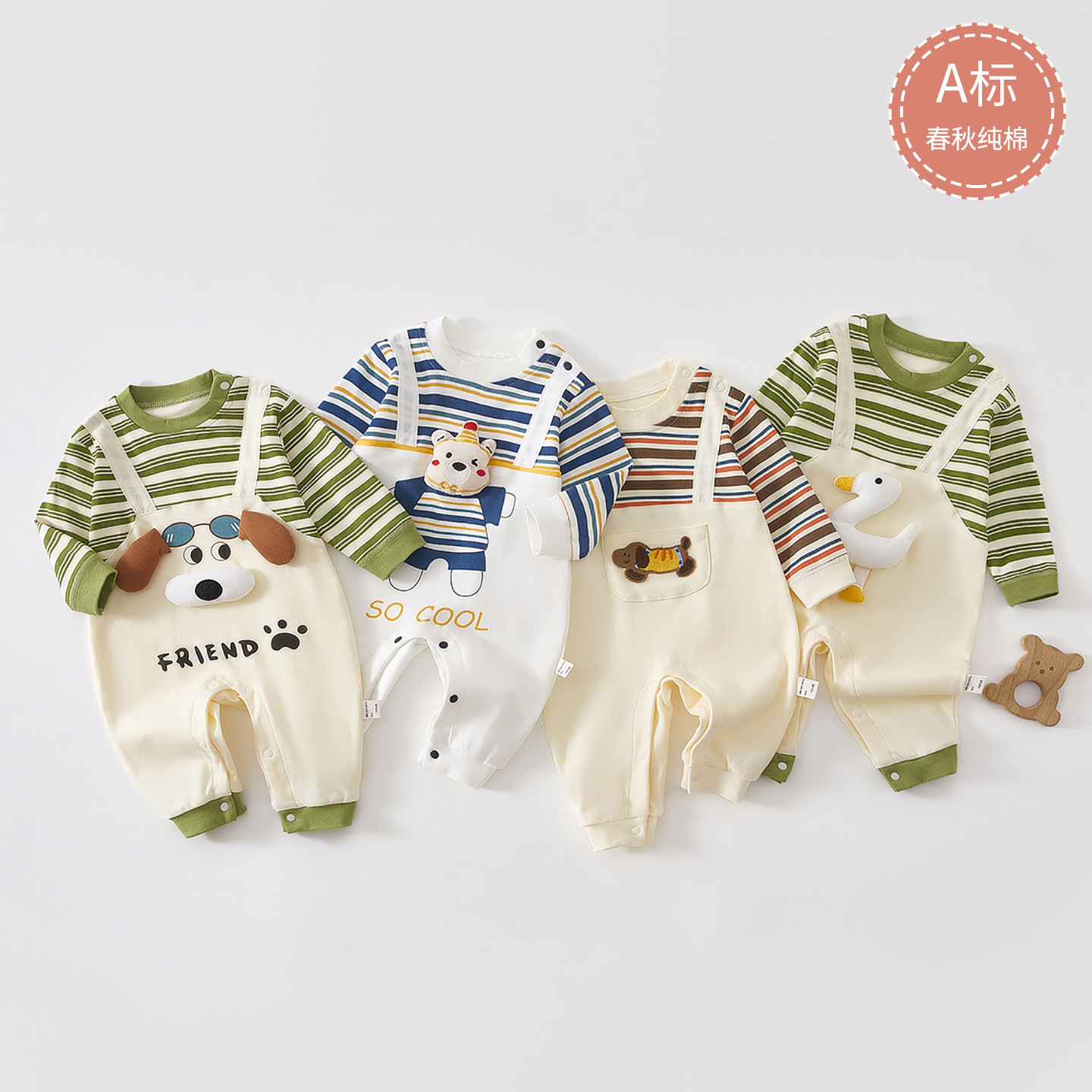婴儿连体衣春秋纯棉新生儿衣服宝宝套头洋气哈衣哄娃器超萌外出服