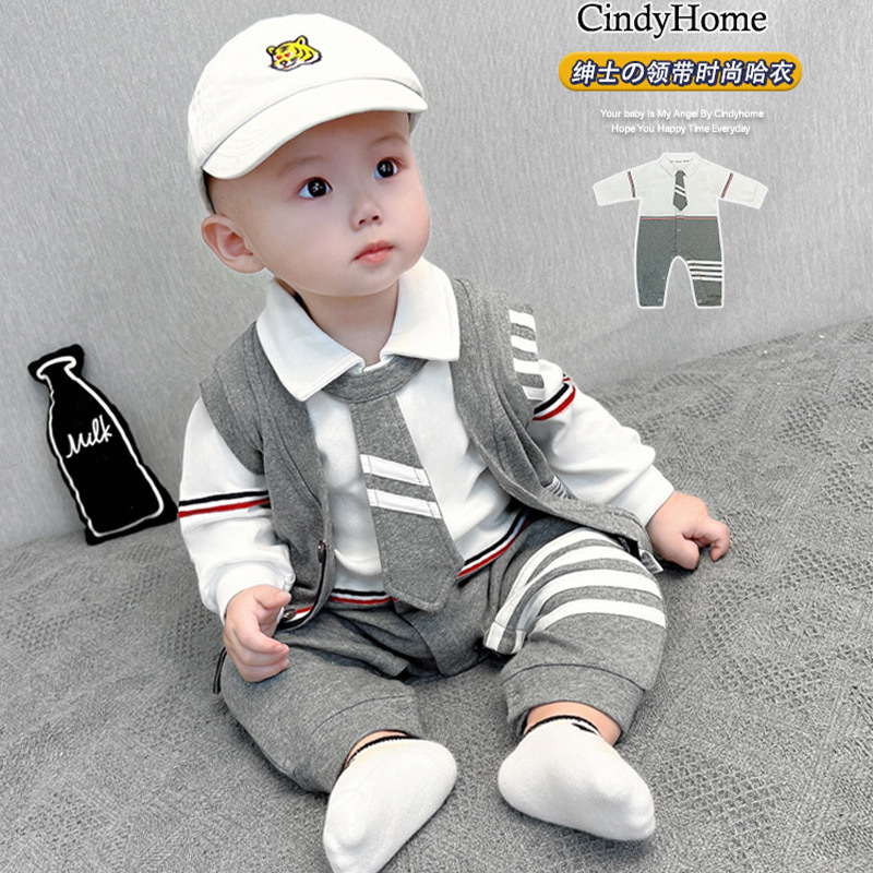 春秋タイプの赤ちゃんの連体服2025春の服装の新型の軽い贅沢な風のごろつきのハンサムな赤ちゃんの洋気の韓国版の潮の范児の哈衣