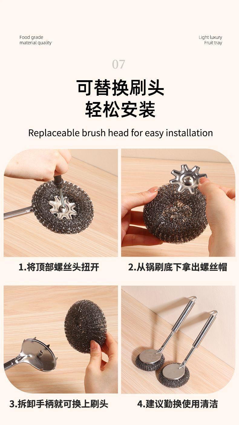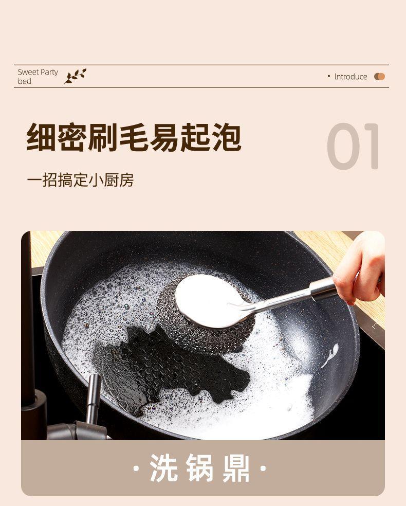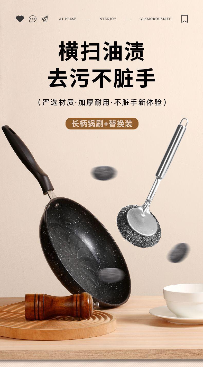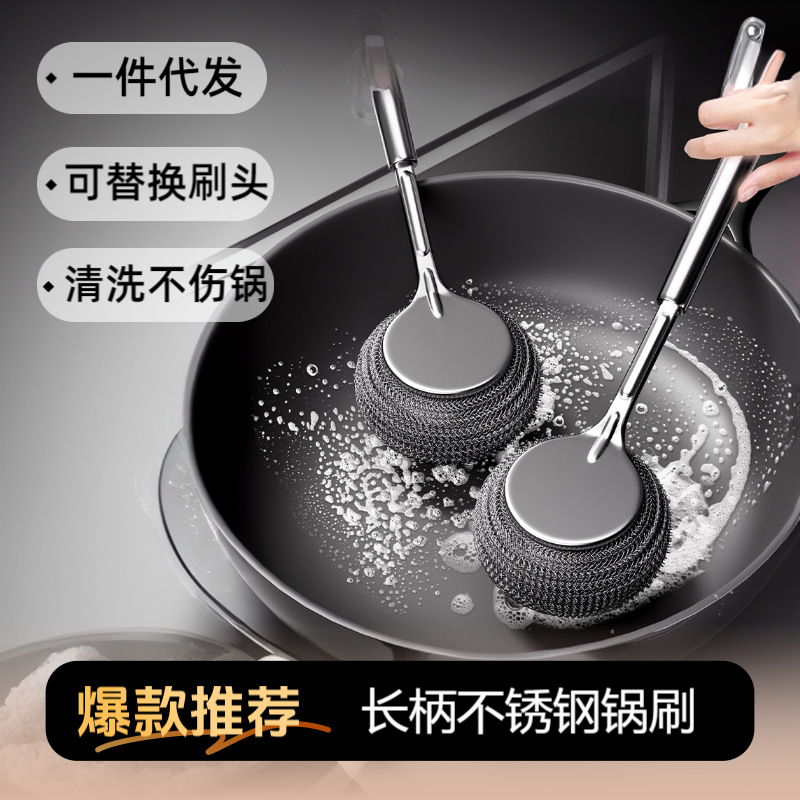 不锈钢锅刷长柄带钢丝球碗刷厨房专用不伤锅洗锅刷子不沾油污批发