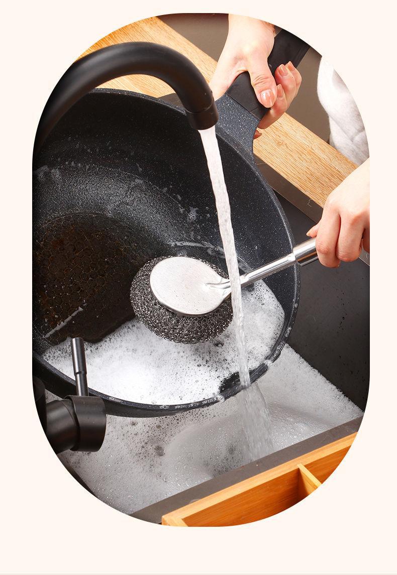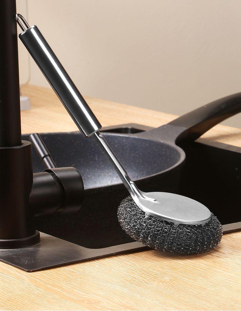 新款不锈钢锅刷厨房专用洗锅钢丝球刷长柄洗碗清洁刷子刷锅神器